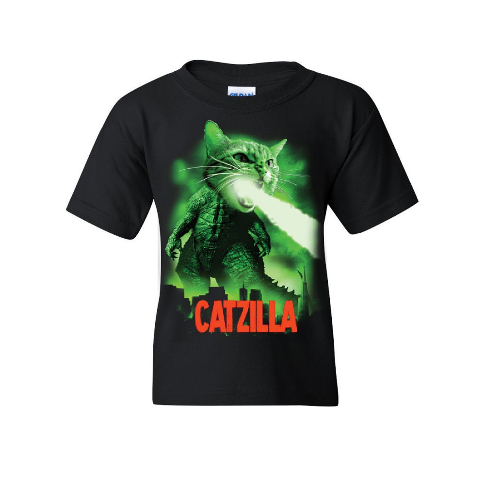 CATZILLA FUNNY PARODY youth t-shirt cat kitten pet atomic breath kids tee black