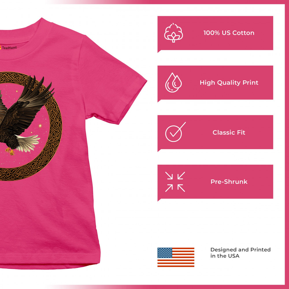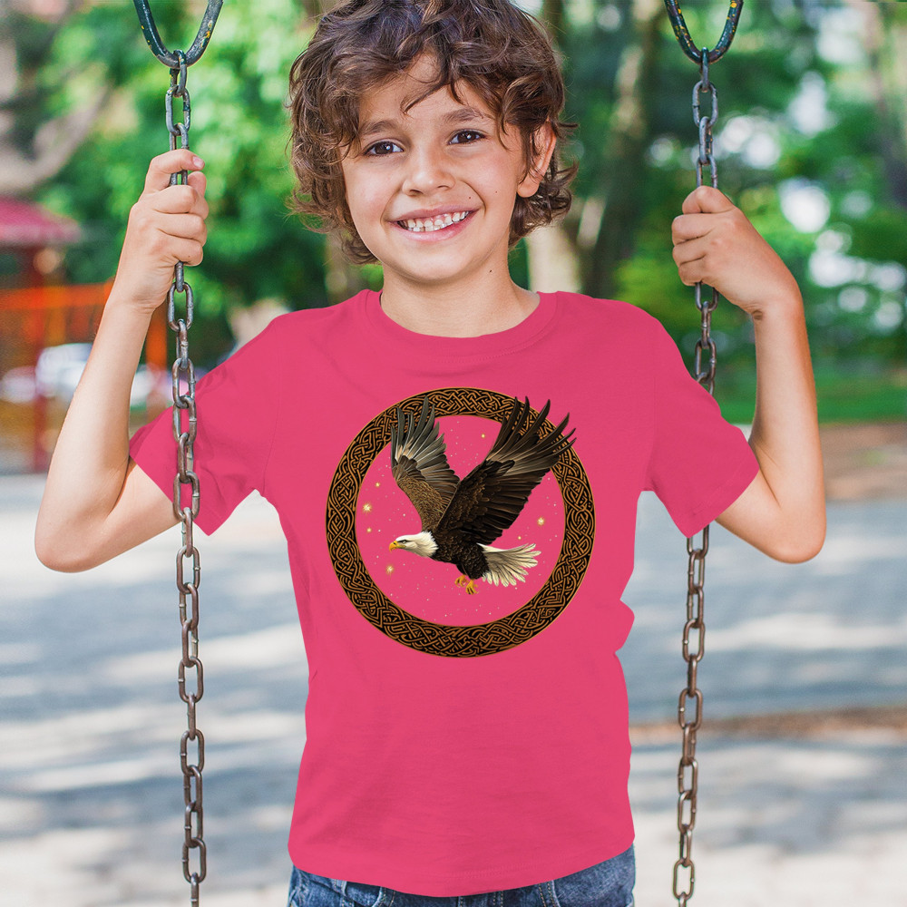 Bald eagle flying in Celtic circle with stars. A bold symbol of freedom, spiritual power, and protection—perfect for patriots and seekers.