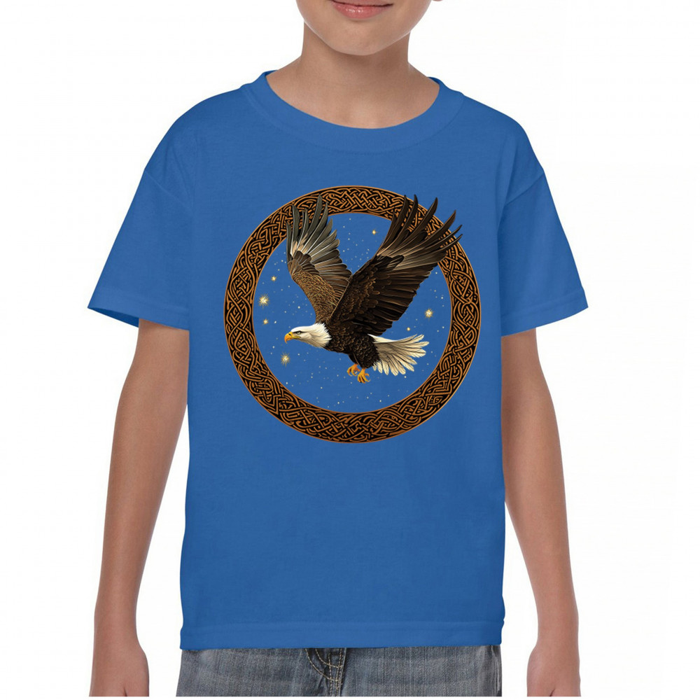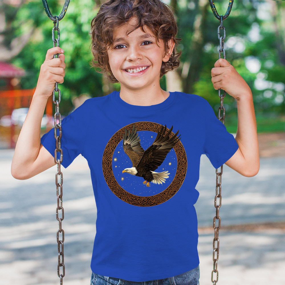 Bald eagle flying in Celtic circle with stars. A bold symbol of freedom, spiritual power, and protection—perfect for patriots and seekers.