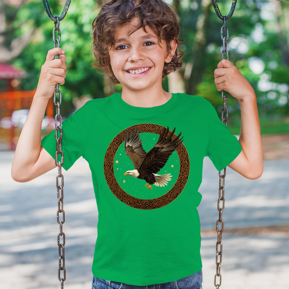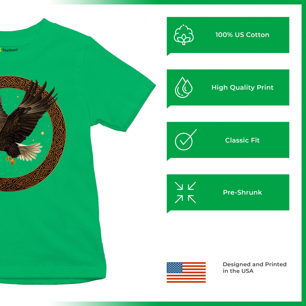Bald eagle flying in Celtic circle with stars. A bold symbol of freedom, spiritual power, and protection—perfect for patriots and seekers.