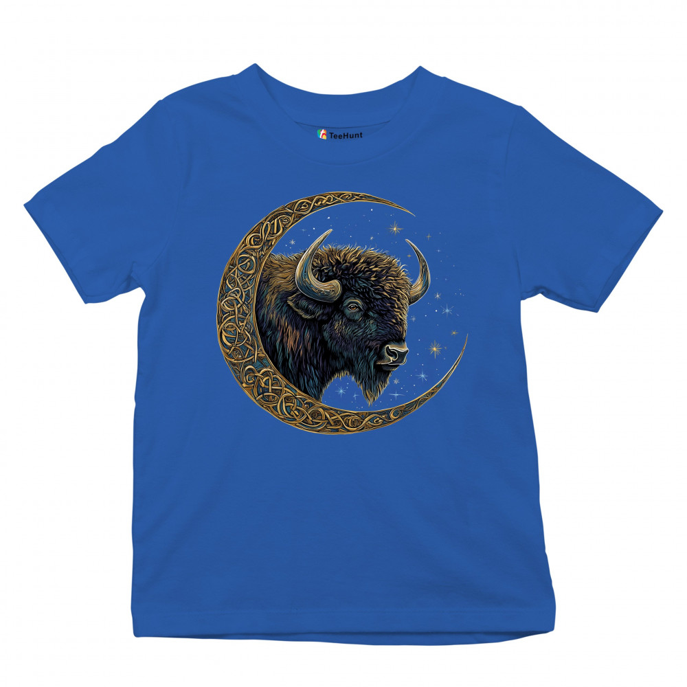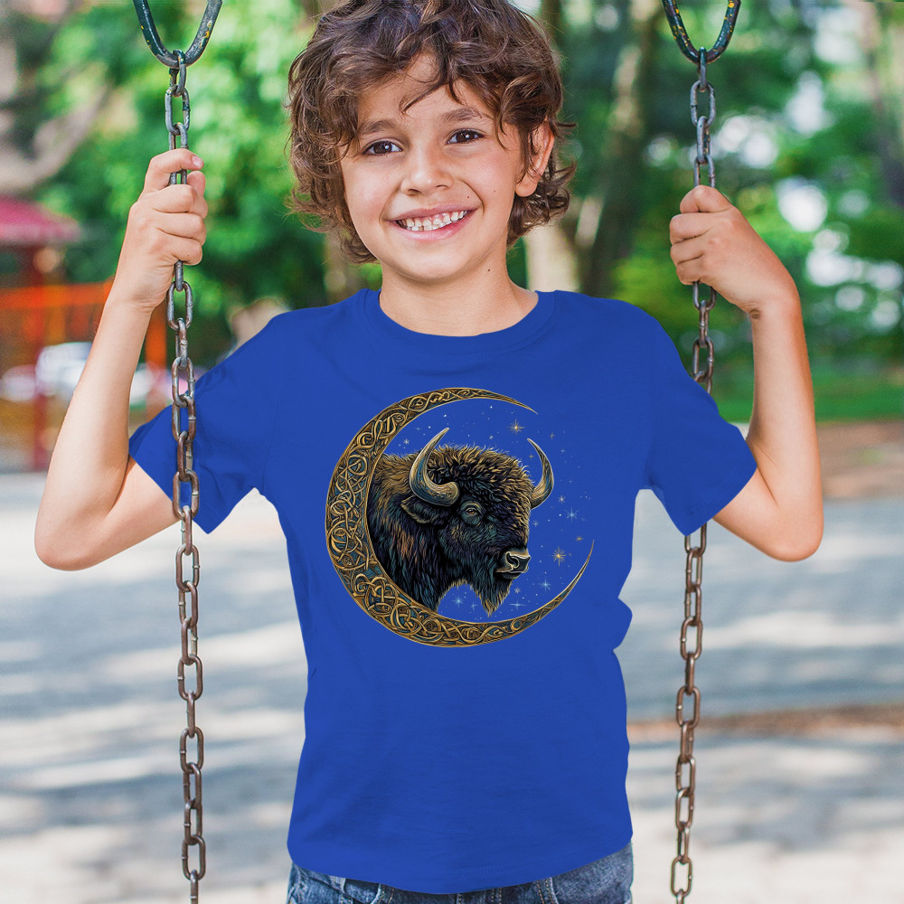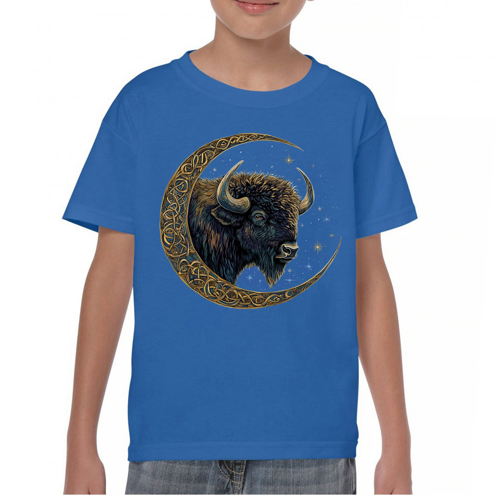Mystical bison in Celtic moon—perfect for spiritual seekers, art fans, stargazers, and lovers of nature, tribal design, and cosmic energy.