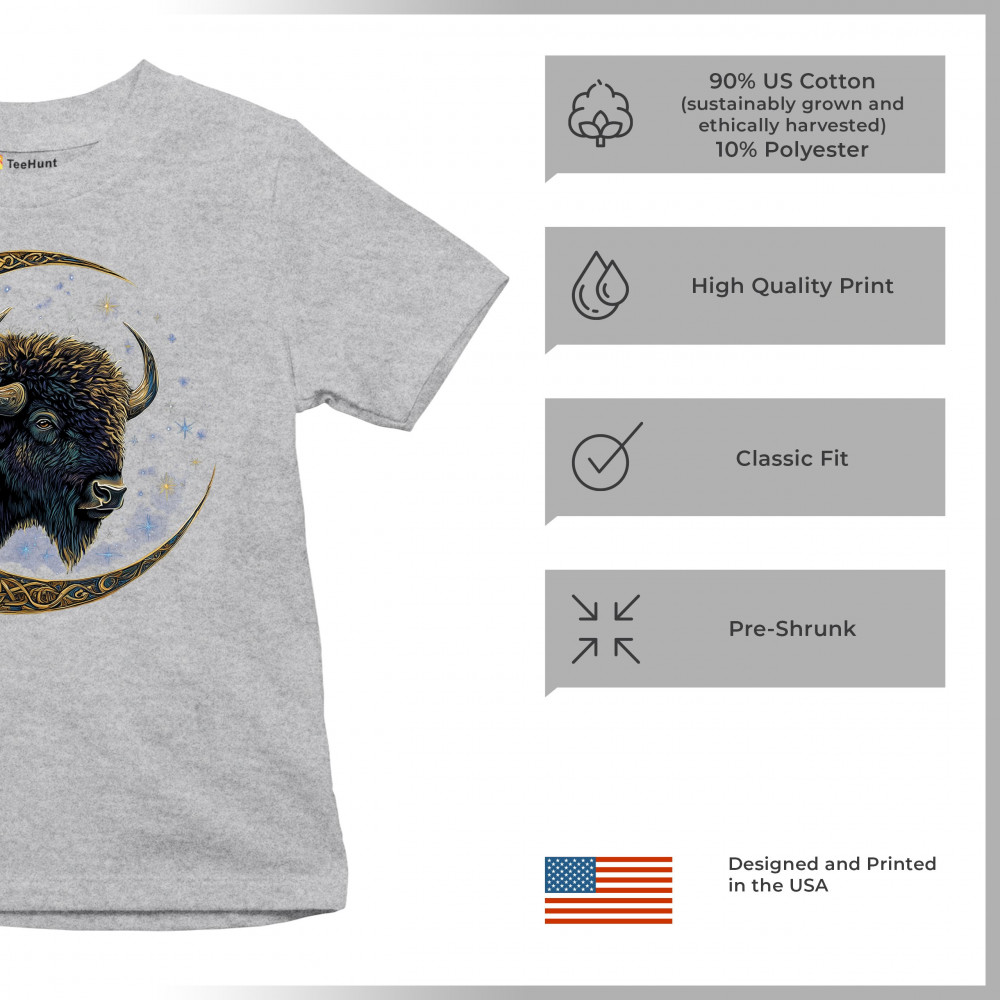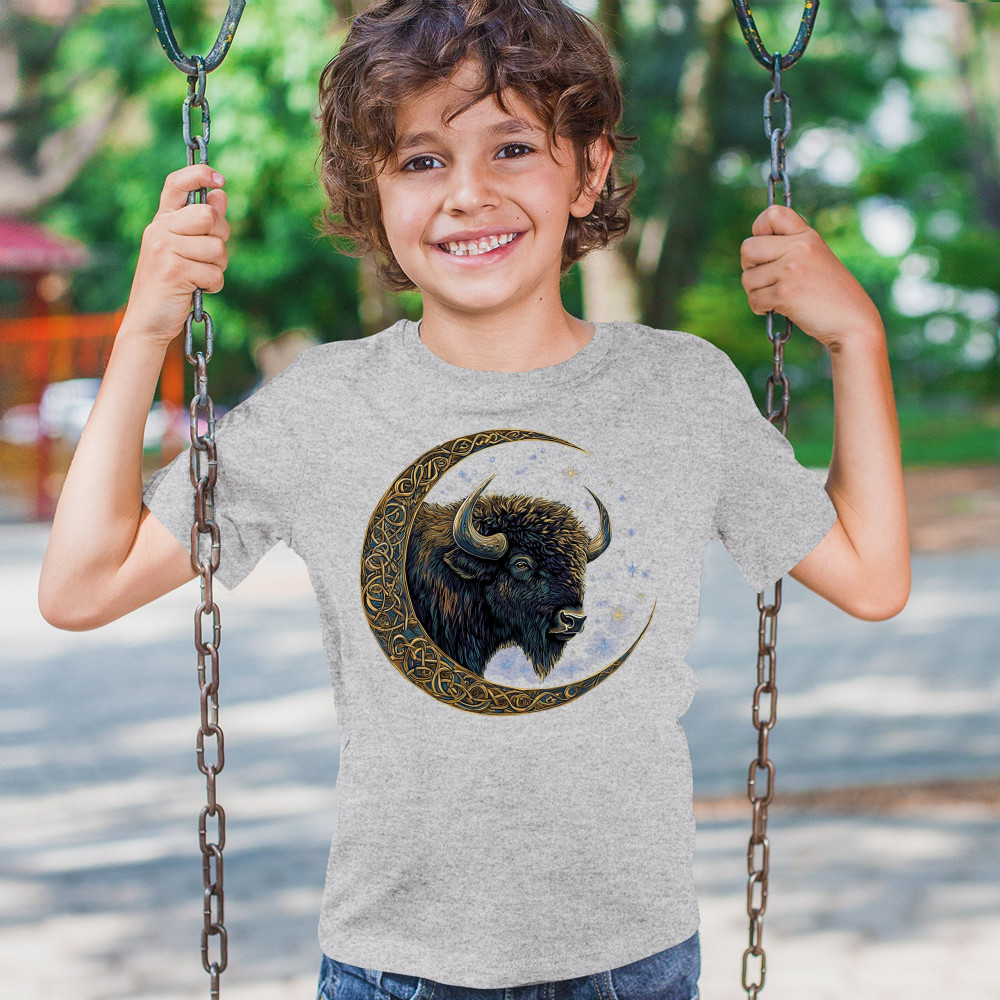 Mystical bison in Celtic moon—perfect for spiritual seekers, art fans, stargazers, and lovers of nature, tribal design, and cosmic energy.