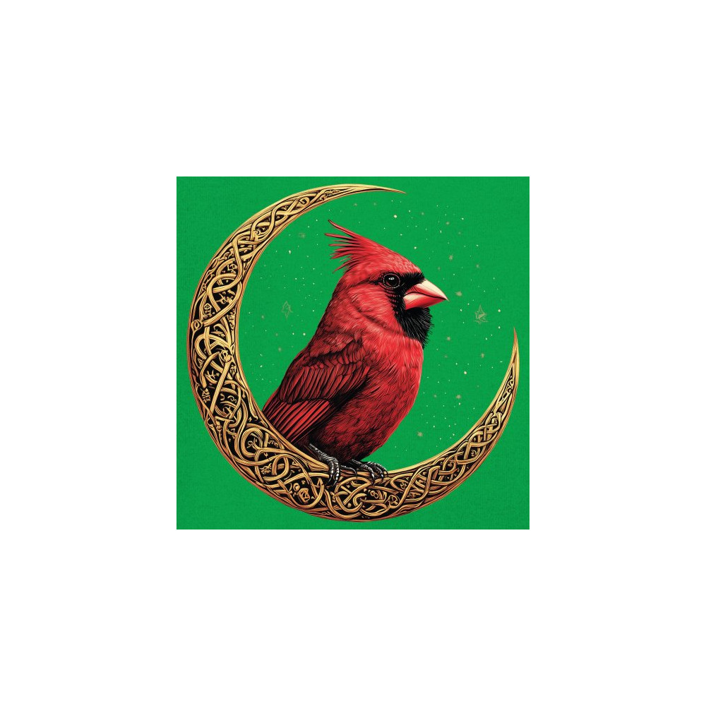 Mystical cardinal with Celtic moon and stars—perfect for nature lovers, spiritual souls, and those honoring love, loss, or remembrance.
