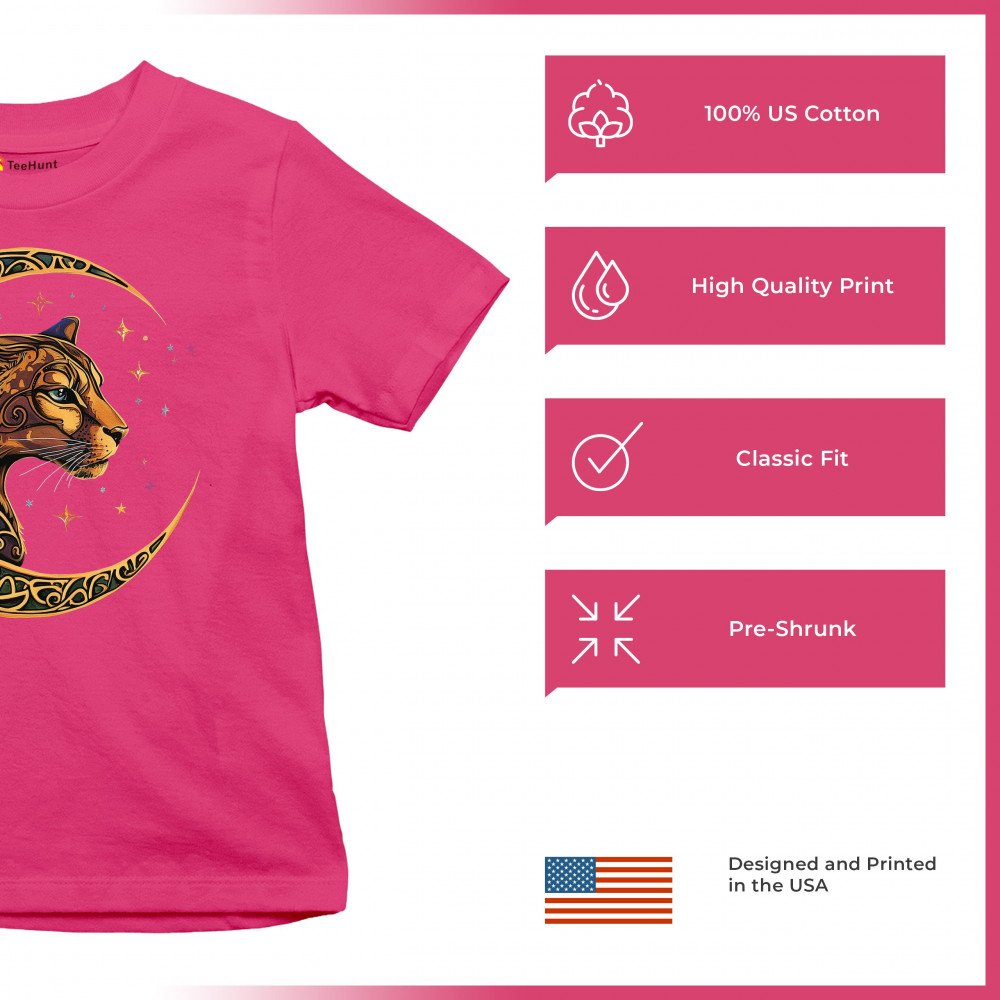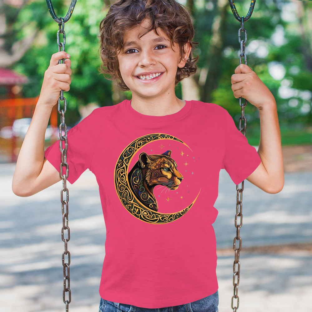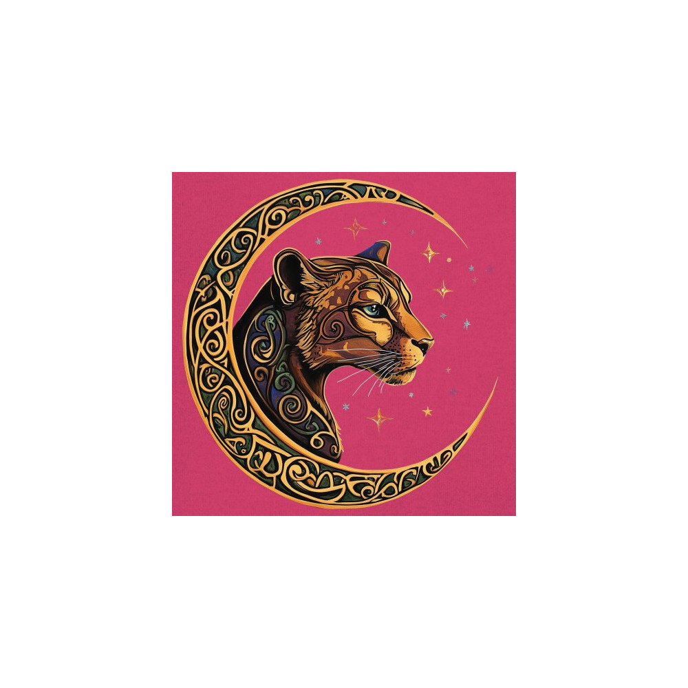 Mystical and elegant, this celestial leopard design merges wild animal strength with spiritual energy. Framed by a golden Celtic crescent moon and set against a starlit sky, it captures themes of nature, intuition, tribal symbolism, fantasy, and feminine power. Ideal for astrology fans, animal lovers, and seekers of cosmic connection.
