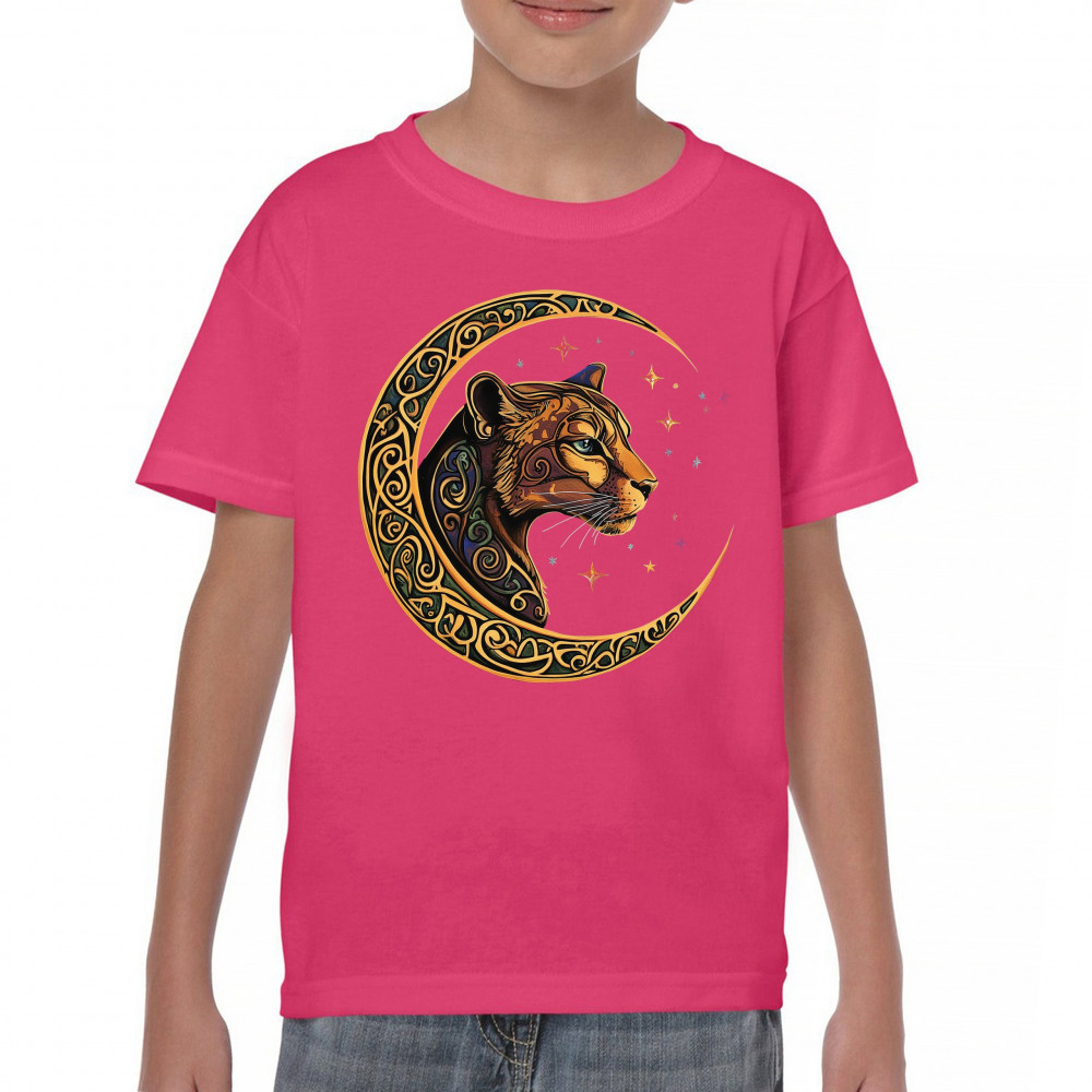 Leopard in Celtic moon with stars—mystical design for fantasy art fans, astrology lovers, and spiritual souls drawn to wild cosmic energy.