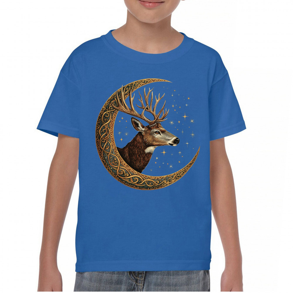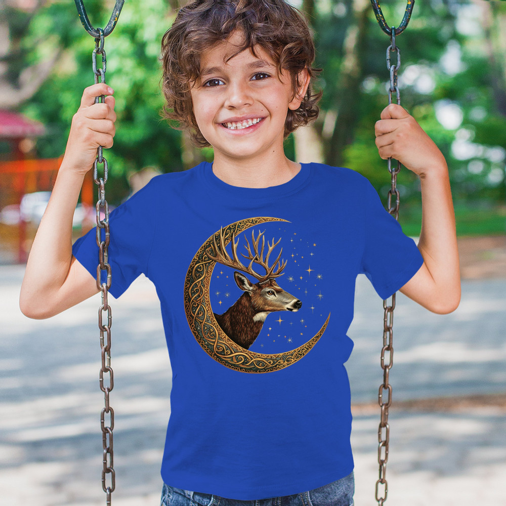 Majestic deer in Celtic moon with stars—symbol of protection, nature, and cosmic wisdom. A mystical gift for hunters, druids, and forest lovers.