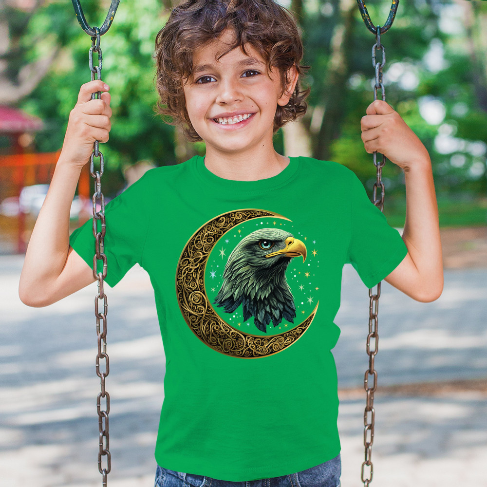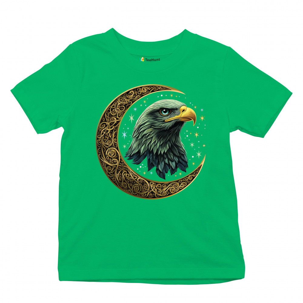 Majestic eagle in golden Celtic moon with stars—symbol of strength, vision, and freedom. Perfect for patriots, spiritual seekers, and nature lovers.