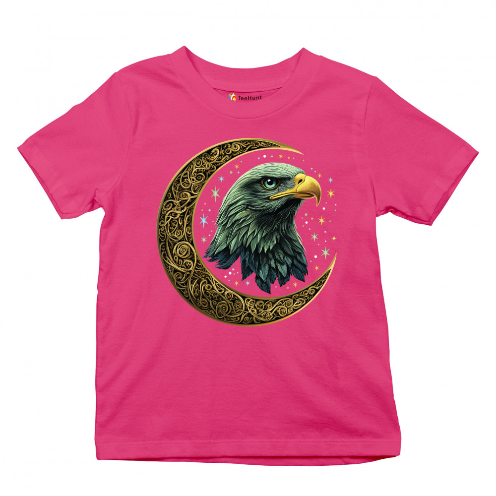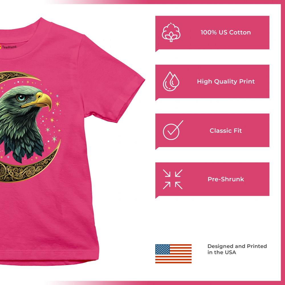 Majestic eagle in golden Celtic moon with stars—symbol of strength, vision, and freedom. Perfect for patriots, spiritual seekers, and nature lovers.