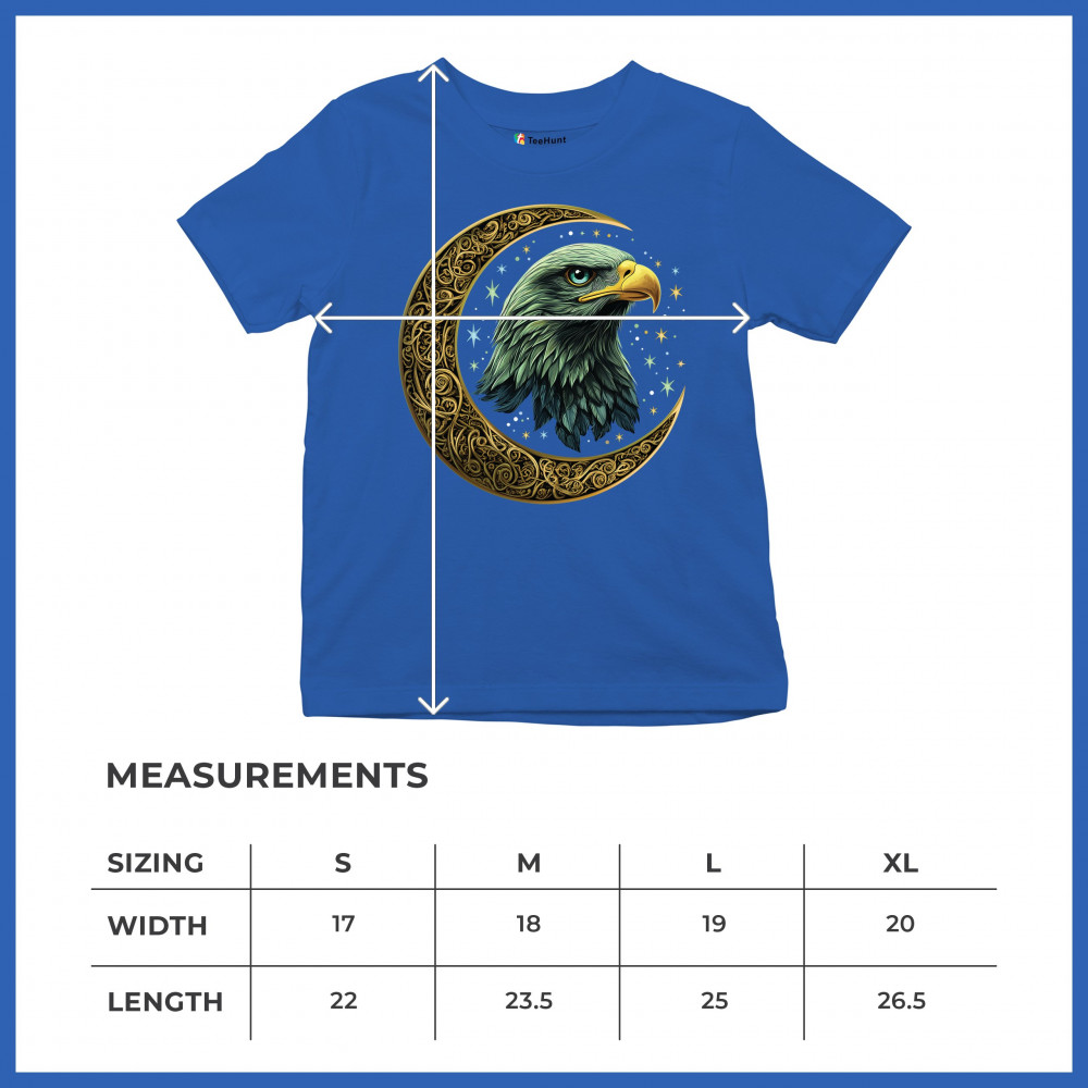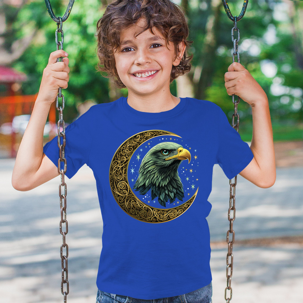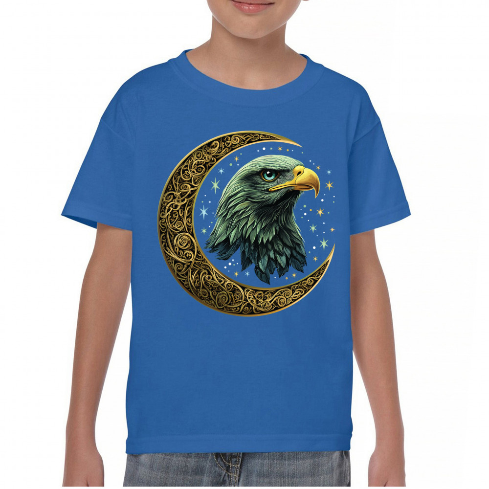 Majestic eagle in golden Celtic moon with stars—symbol of strength, vision, and freedom. Perfect for patriots, spiritual seekers, and nature lovers.