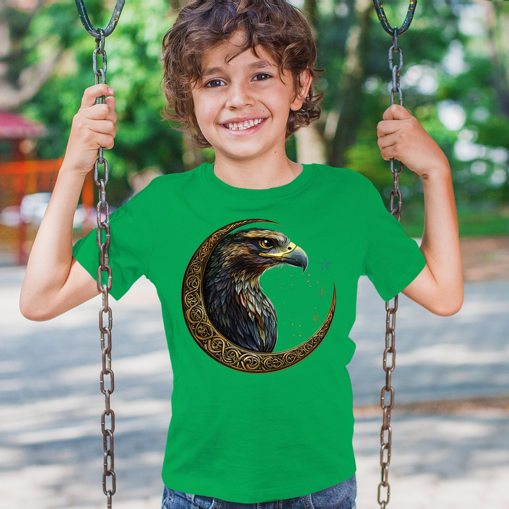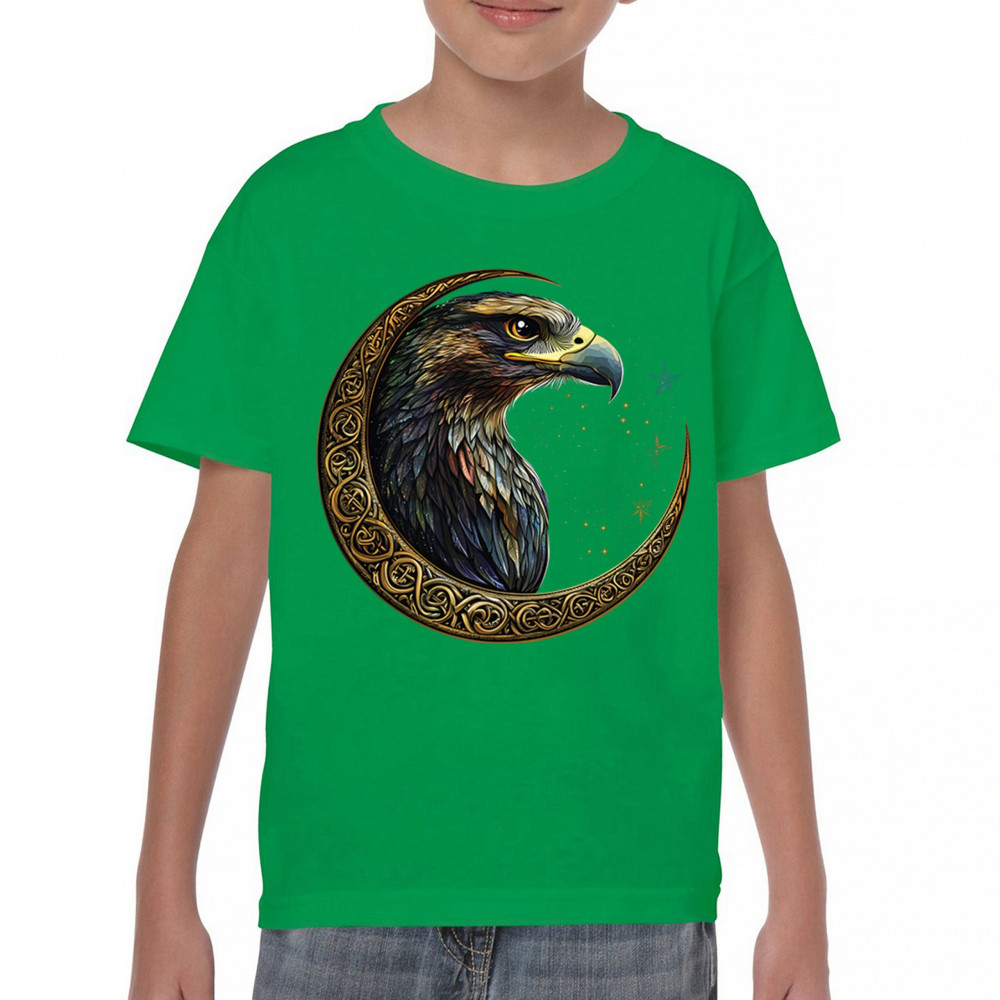 Vibrant eagle in Celtic moon with cosmic background. Represents freedom, vision, and spiritual strength—perfect for bird lovers and seekers.