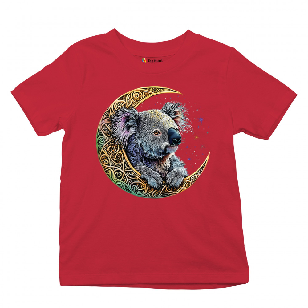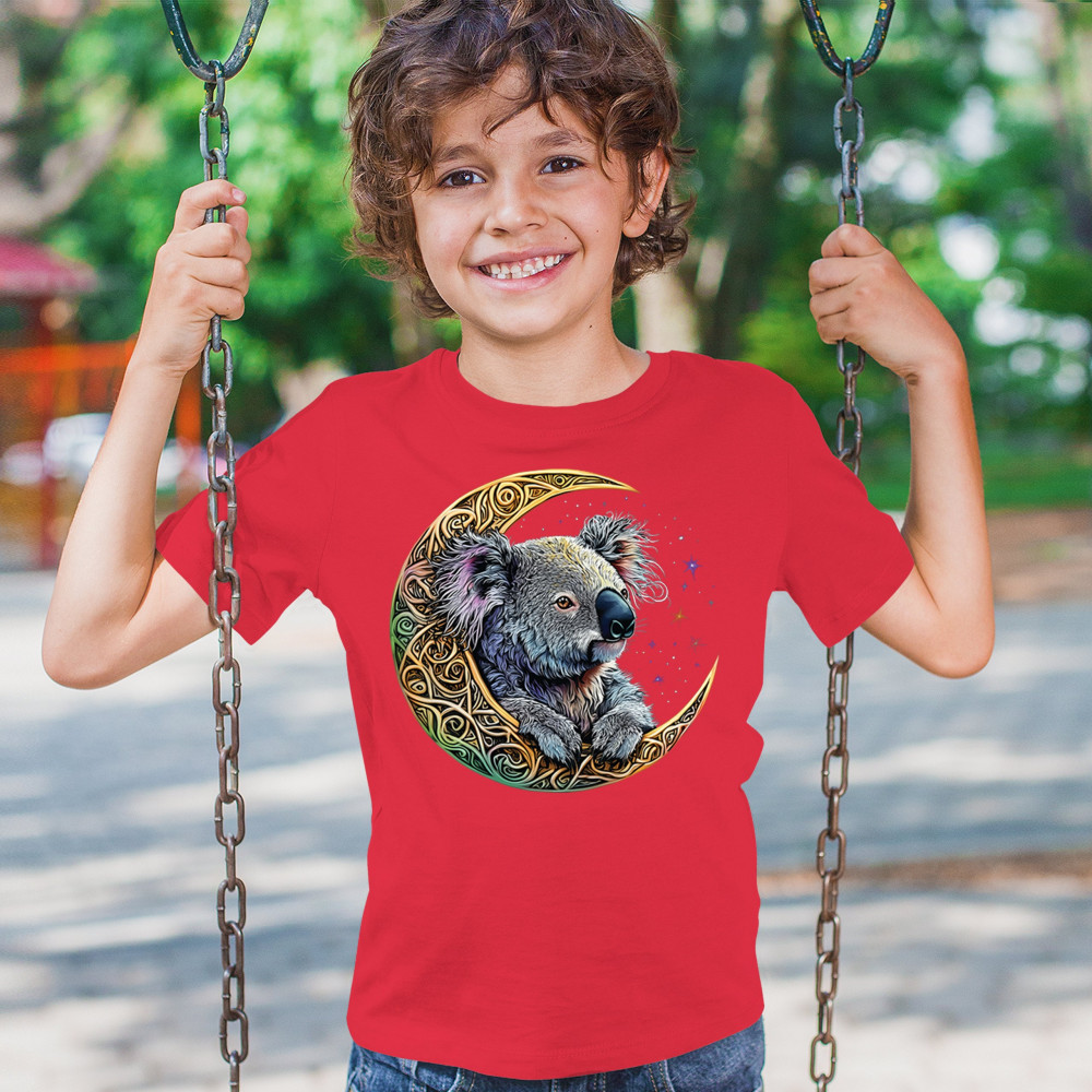 Koala resting in Celtic crescent moon with cosmic sky. A peaceful design for nature lovers, spiritual thinkers, and fantasy art fans.