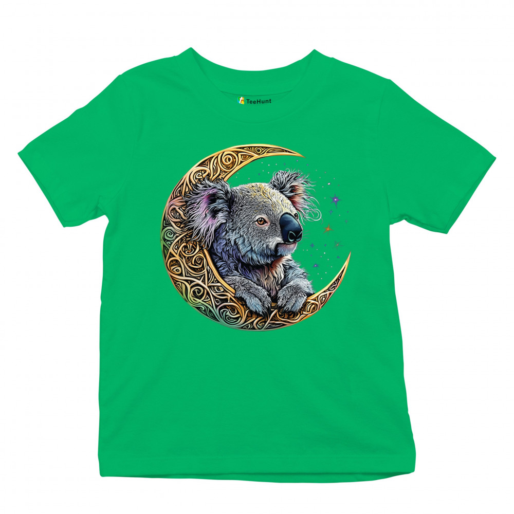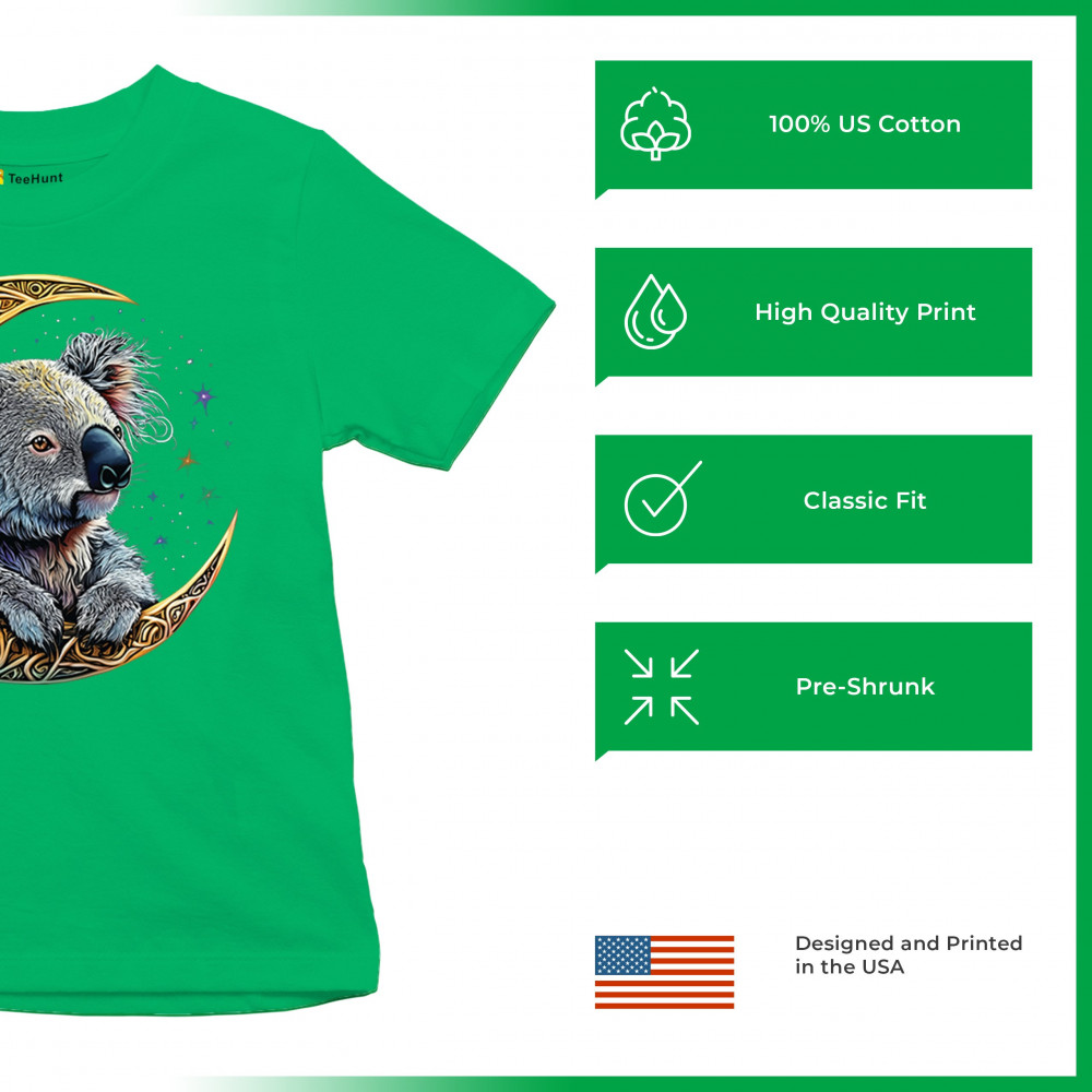 Koala resting in Celtic crescent moon with cosmic sky. A peaceful design for nature lovers, spiritual thinkers, and fantasy art fans.