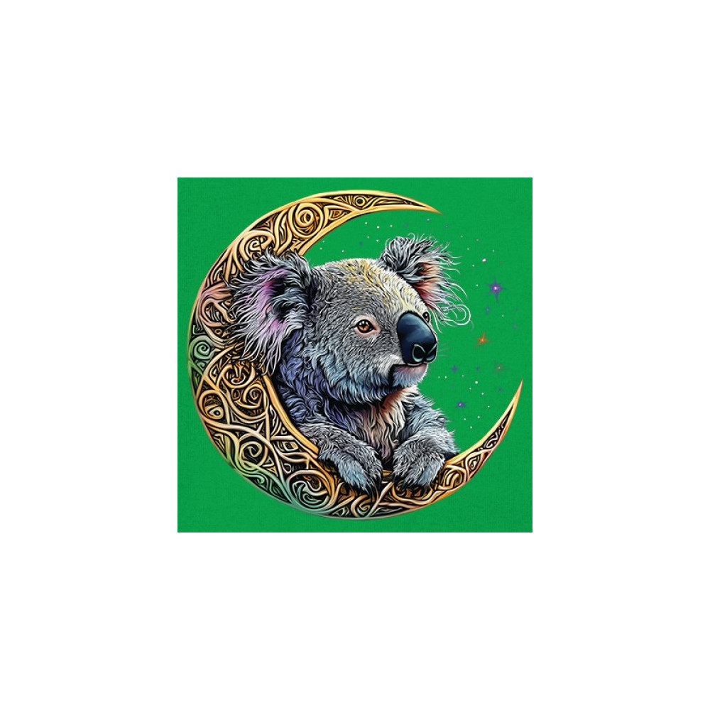 This enchanting koala design brings together Celtic symbolism, native Australian charm, and spiritual peace. Resting in an ornate crescent moon, the koala is surrounded by a dreamy, star-filled sky. A perfect expression of calm energy, nature, and fantasy—ideal for wildlife lovers, cozy souls, and mystic dreamers.