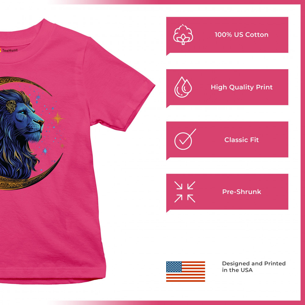 Majestic lion in Celtic crescent moon design—ideal for Leos, fantasy fans, and spiritual seekers drawn to strength and celestial symbolism.