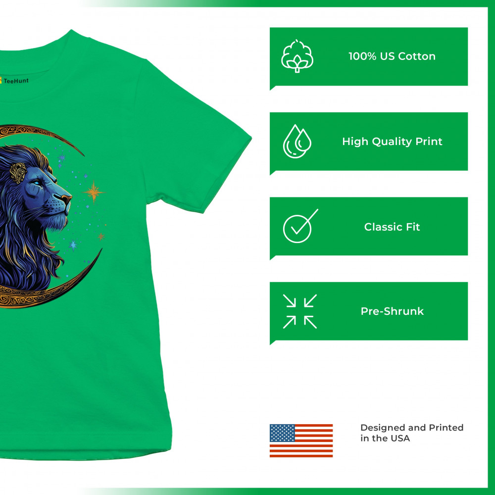 Majestic lion in Celtic crescent moon design—ideal for Leos, fantasy fans, and spiritual seekers drawn to strength and celestial symbolism.