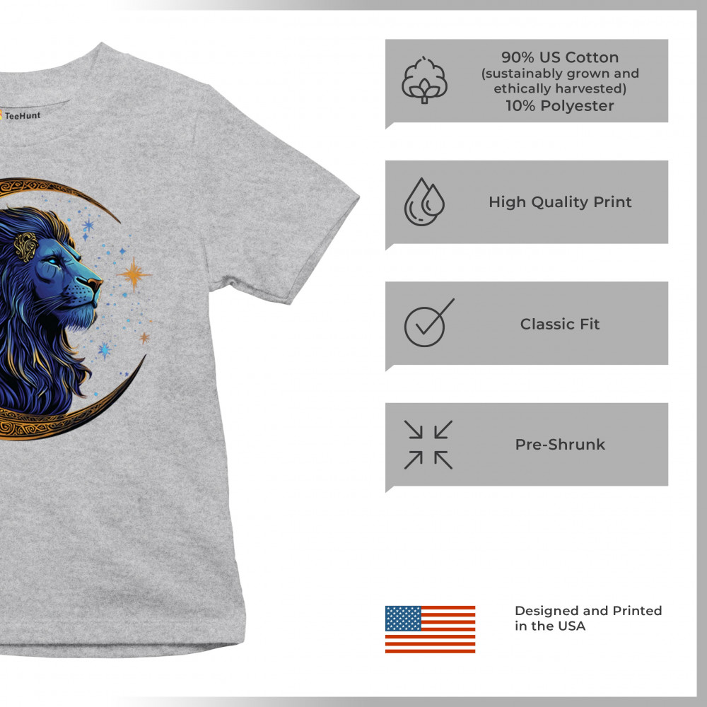 Majestic lion in Celtic crescent moon design—ideal for Leos, fantasy fans, and spiritual seekers drawn to strength and celestial symbolism.