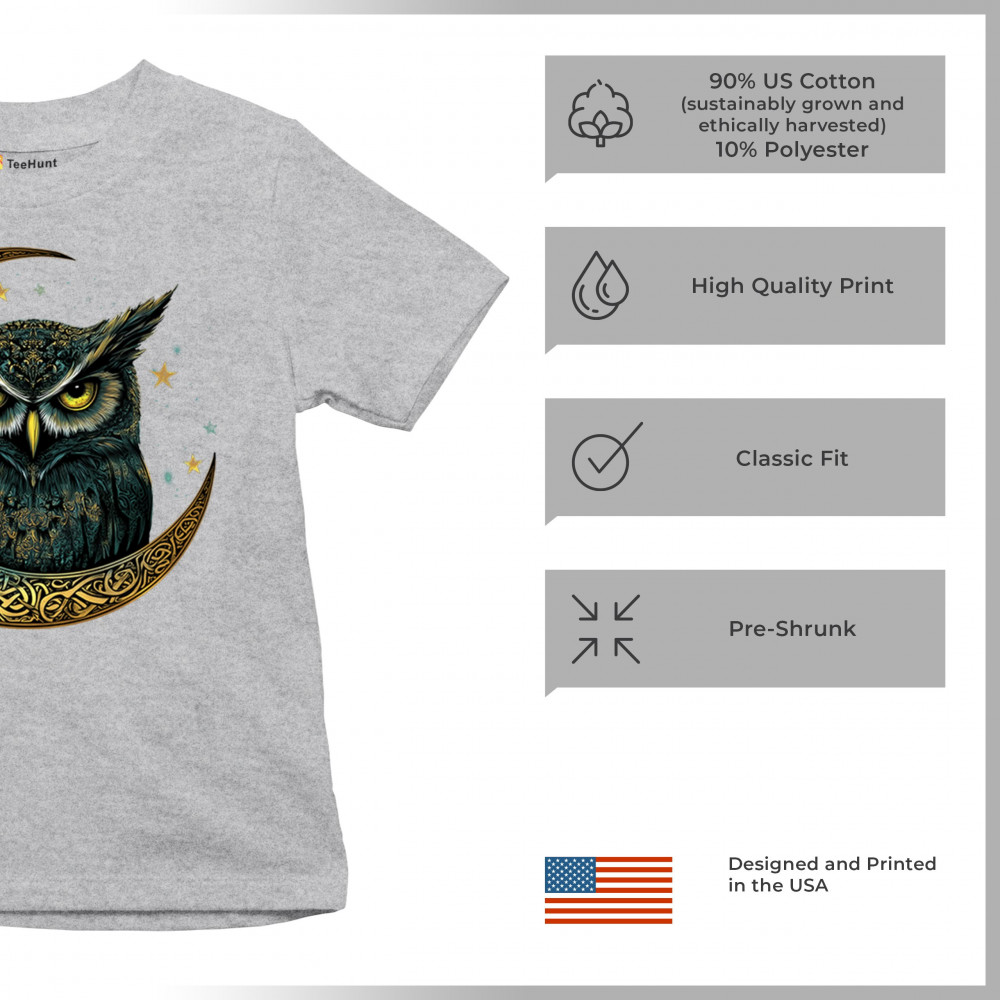 Cosmic owl in Celtic crescent moon—symbol of wisdom, night mystery, and spirit. Perfect for mystics, owl lovers, and fantasy fans.