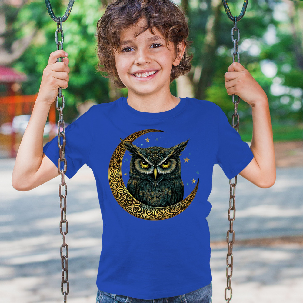 Cosmic owl in Celtic crescent moon—symbol of wisdom, night mystery, and spirit. Perfect for mystics, owl lovers, and fantasy fans.