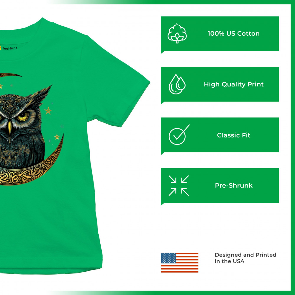 Cosmic owl in Celtic crescent moon—symbol of wisdom, night mystery, and spirit. Perfect for mystics, owl lovers, and fantasy fans.