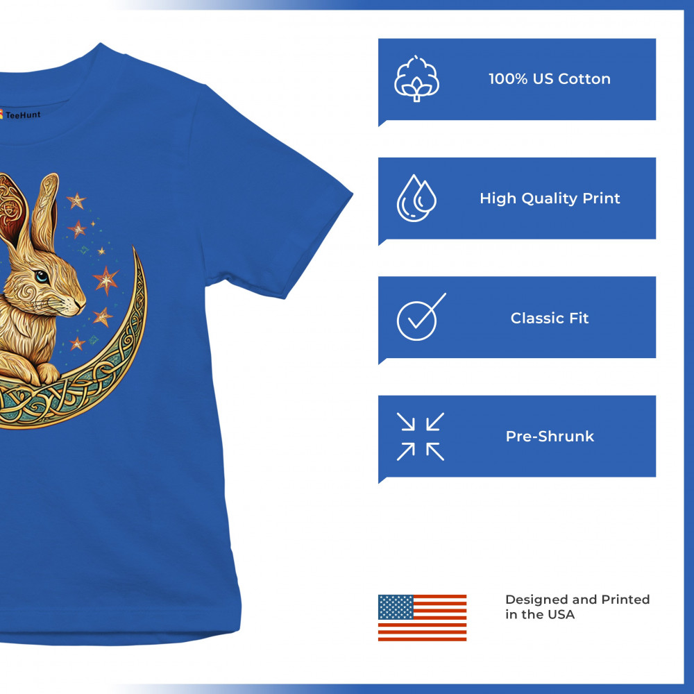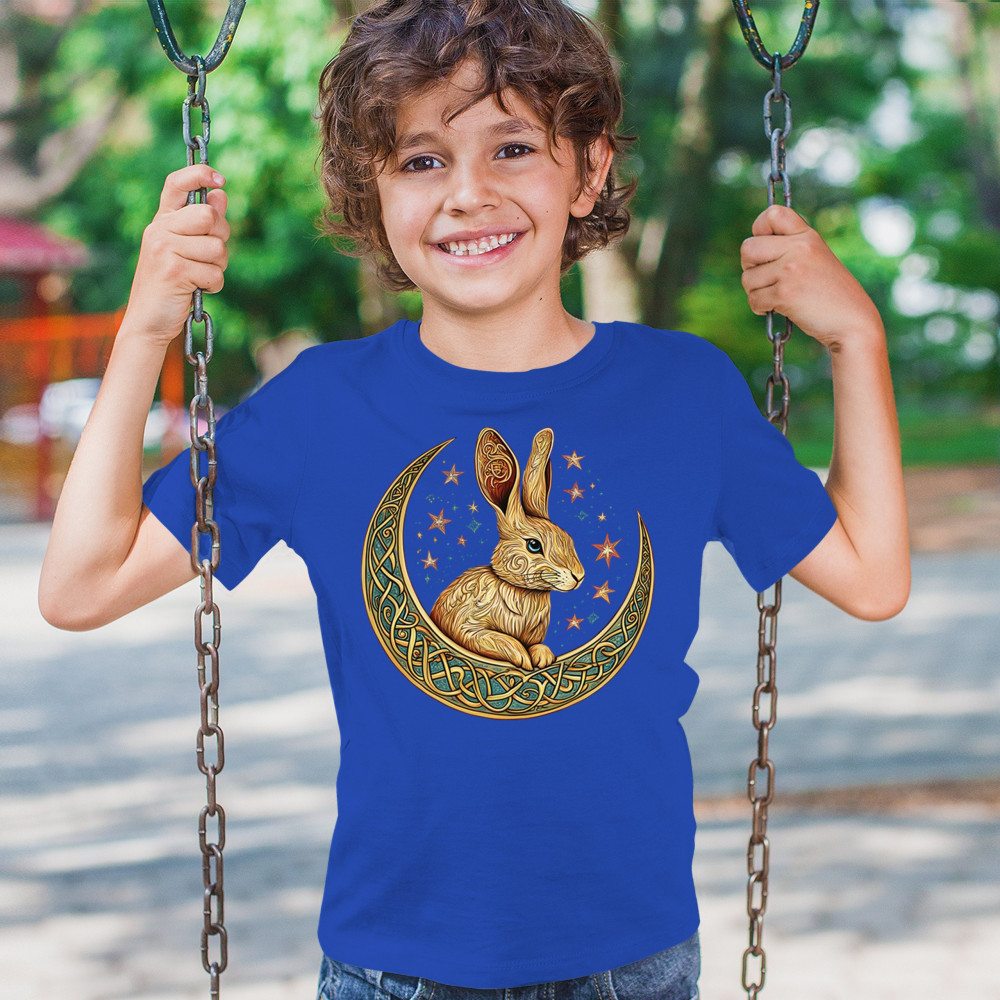Mystical rabbit in Celtic moon—symbolizing intuition, rebirth, and spring energy. Ideal for fantasy lovers, mystics, and nature fans.
