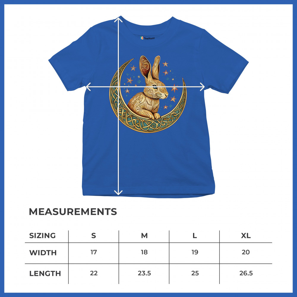 A golden rabbit curls peacefully within a beautifully detailed Celtic crescent moon. This mystical design blends symbols of new beginnings, fertility, and intuitive wisdom with a cosmic starry backdrop. A perfect piece for dreamers, mystics, springtime souls, and fantasy art fans who find deeper meaning in nature and animal spirits.