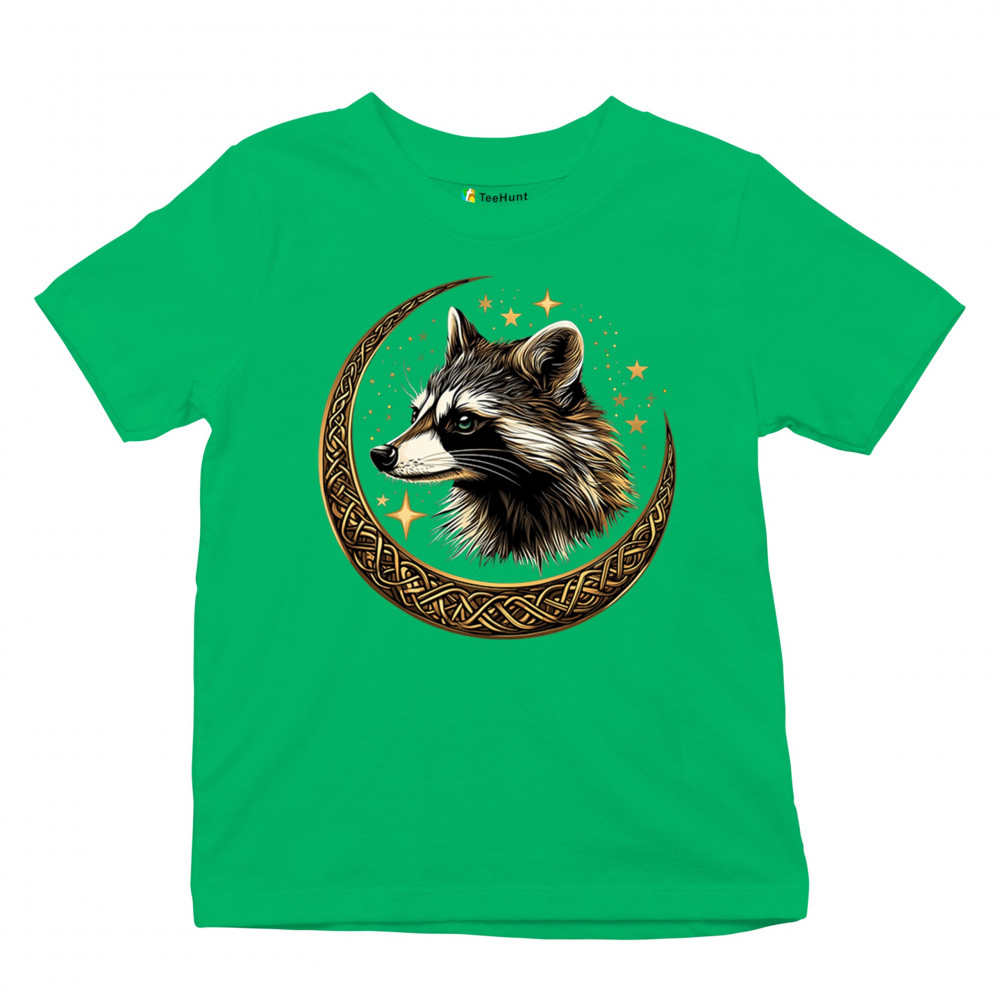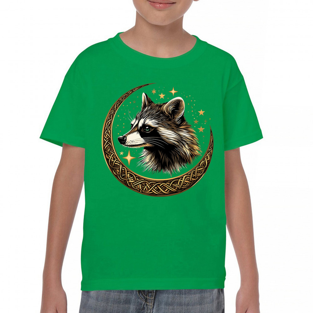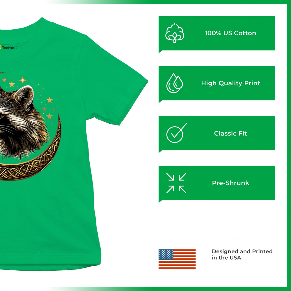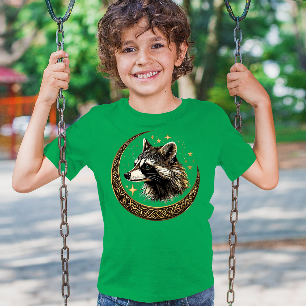 Cosmic raccoon design in Celtic moon. Symbol of adaptability, mystery, and spiritual intelligence. A perfect gift for wild and curious souls.