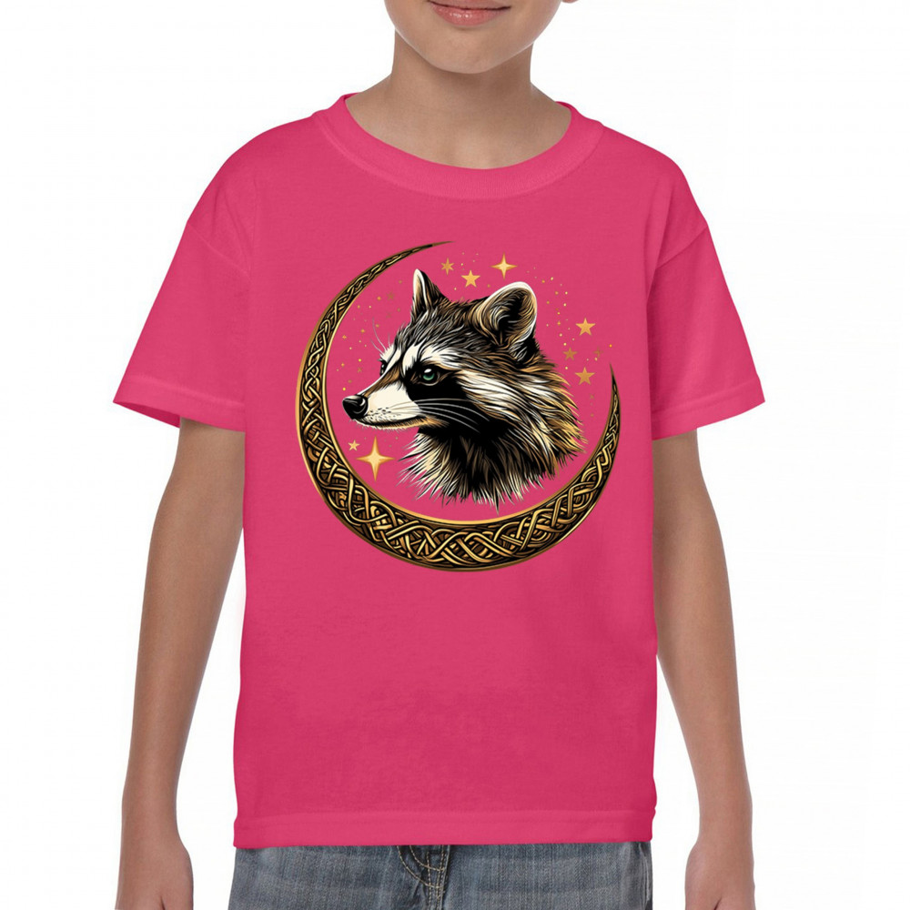 Cosmic raccoon design in Celtic moon. Symbol of adaptability, mystery, and spiritual intelligence. A perfect gift for wild and curious souls.