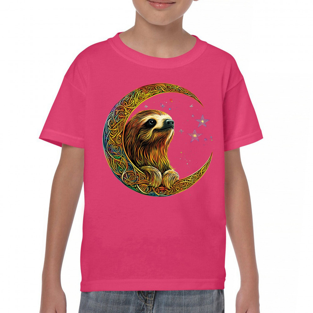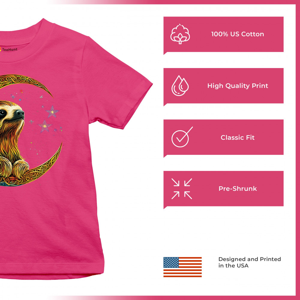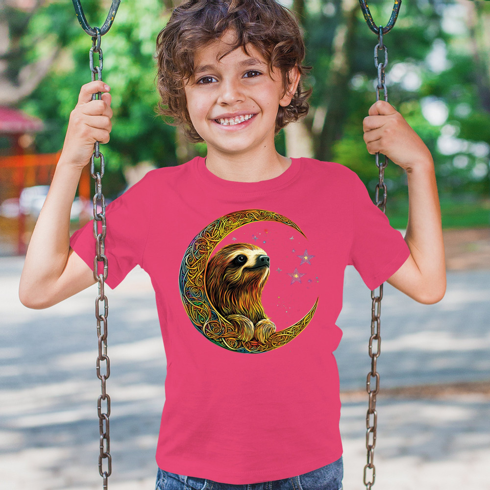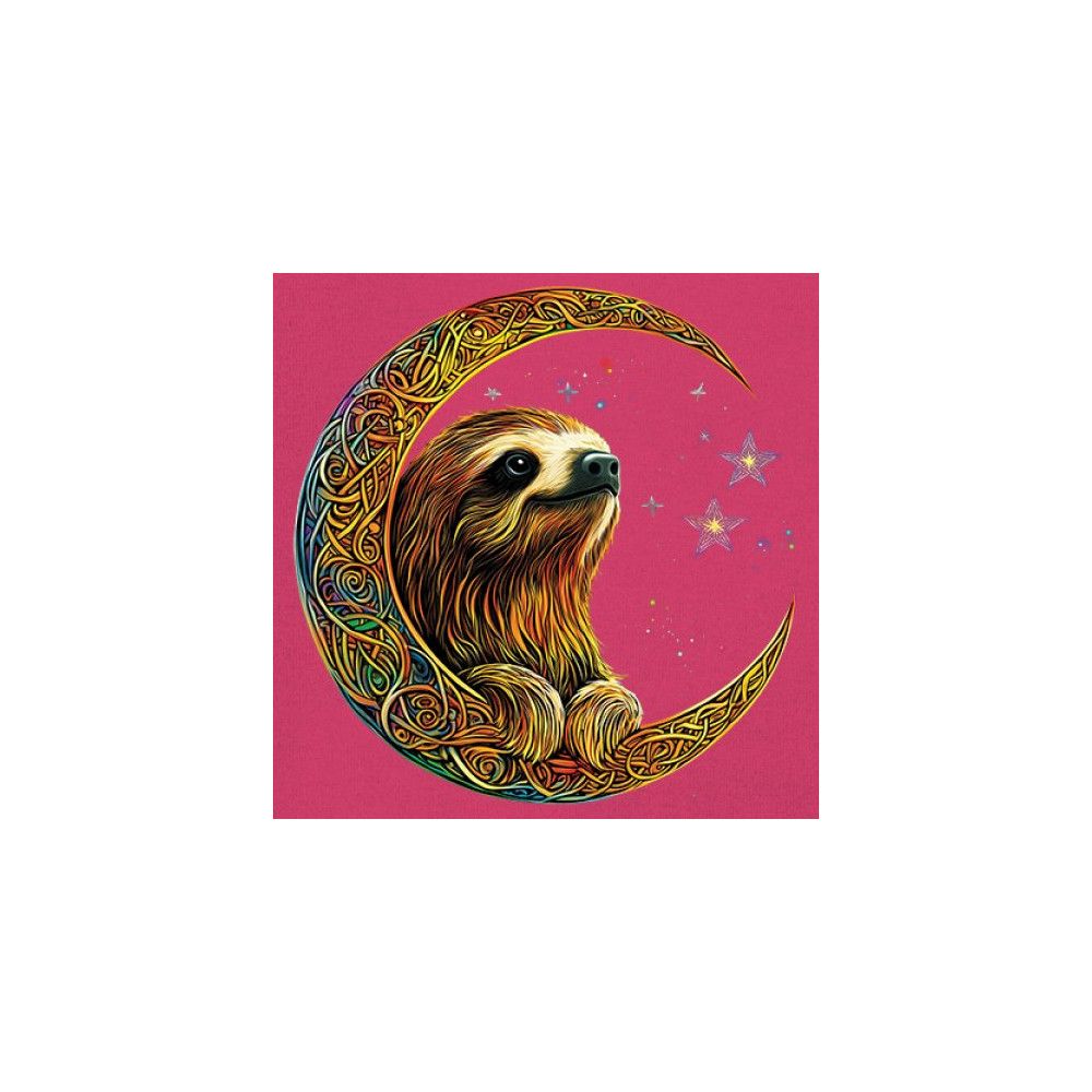 Celebrate peace and presence with this stunning sloth design cradled in a gold Celtic crescent moon. Surrounded by a vibrant starry sky, the image blends jungle whimsy with tribal patterns and mystical vibes. A perfect design for lovers of fantasy animals, mindfulness, and slow living. A beautiful tribute to spiritual stillness and cosmic calm.