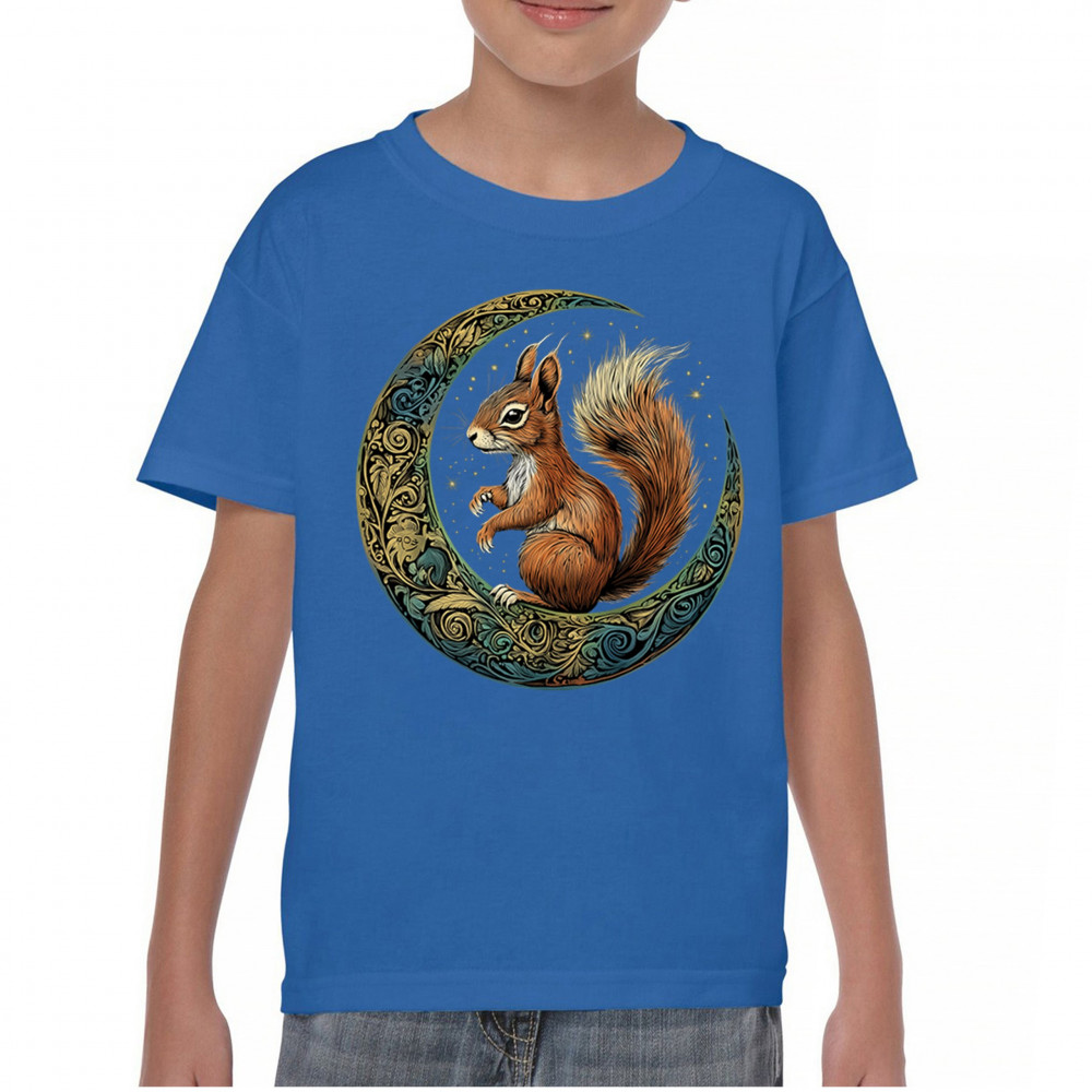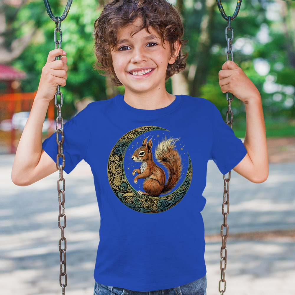 Celebrate agility, awareness, and forest wisdom with this magical red squirrel design. Nestled in a green-gold Celtic crescent moon and backed by a starry cosmic sky, this piece merges natural energy with tribal patterns and celestial wonder. A unique design for animal spirit believers, forest wanderers, and fantasy nature fans.