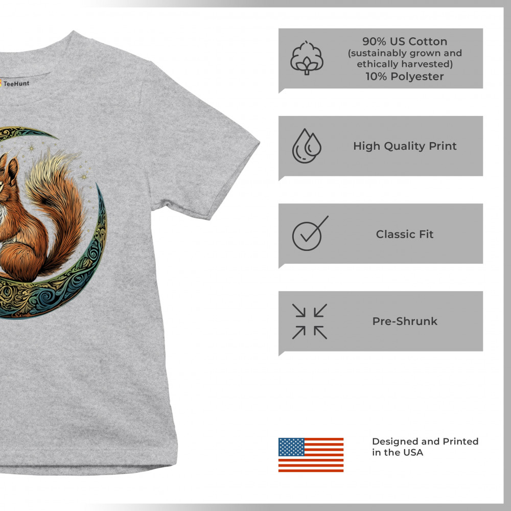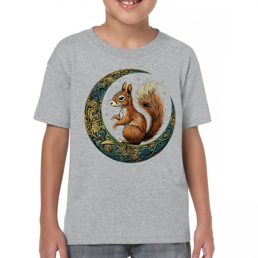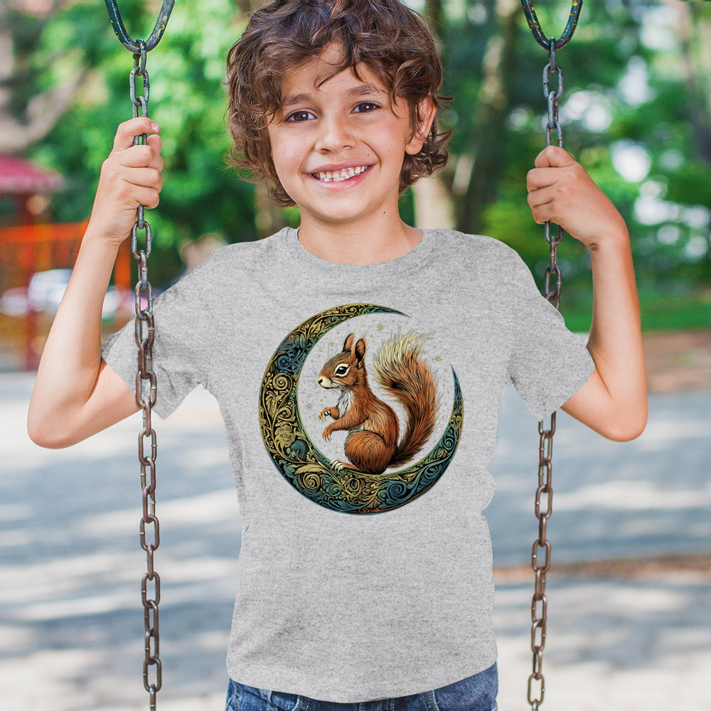 Celebrate agility, awareness, and forest wisdom with this magical red squirrel design. Nestled in a green-gold Celtic crescent moon and backed by a starry cosmic sky, this piece merges natural energy with tribal patterns and celestial wonder. A unique design for animal spirit believers, forest wanderers, and fantasy nature fans.