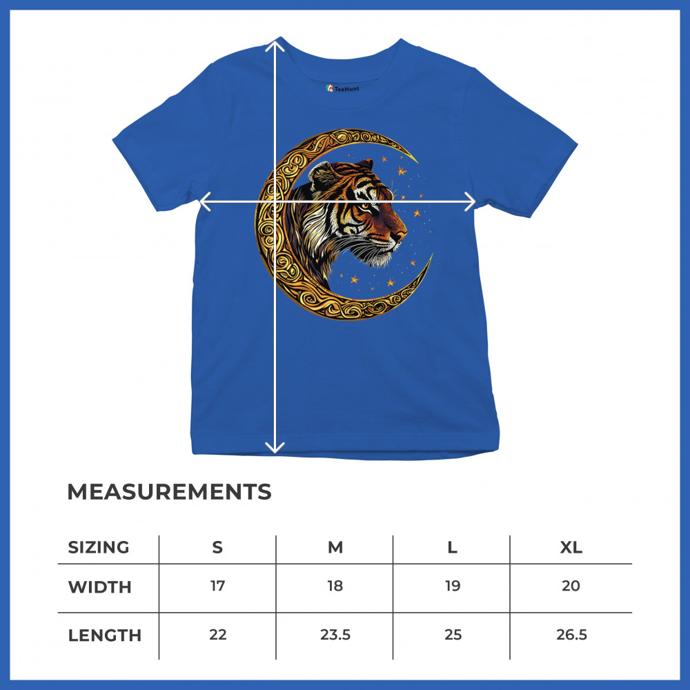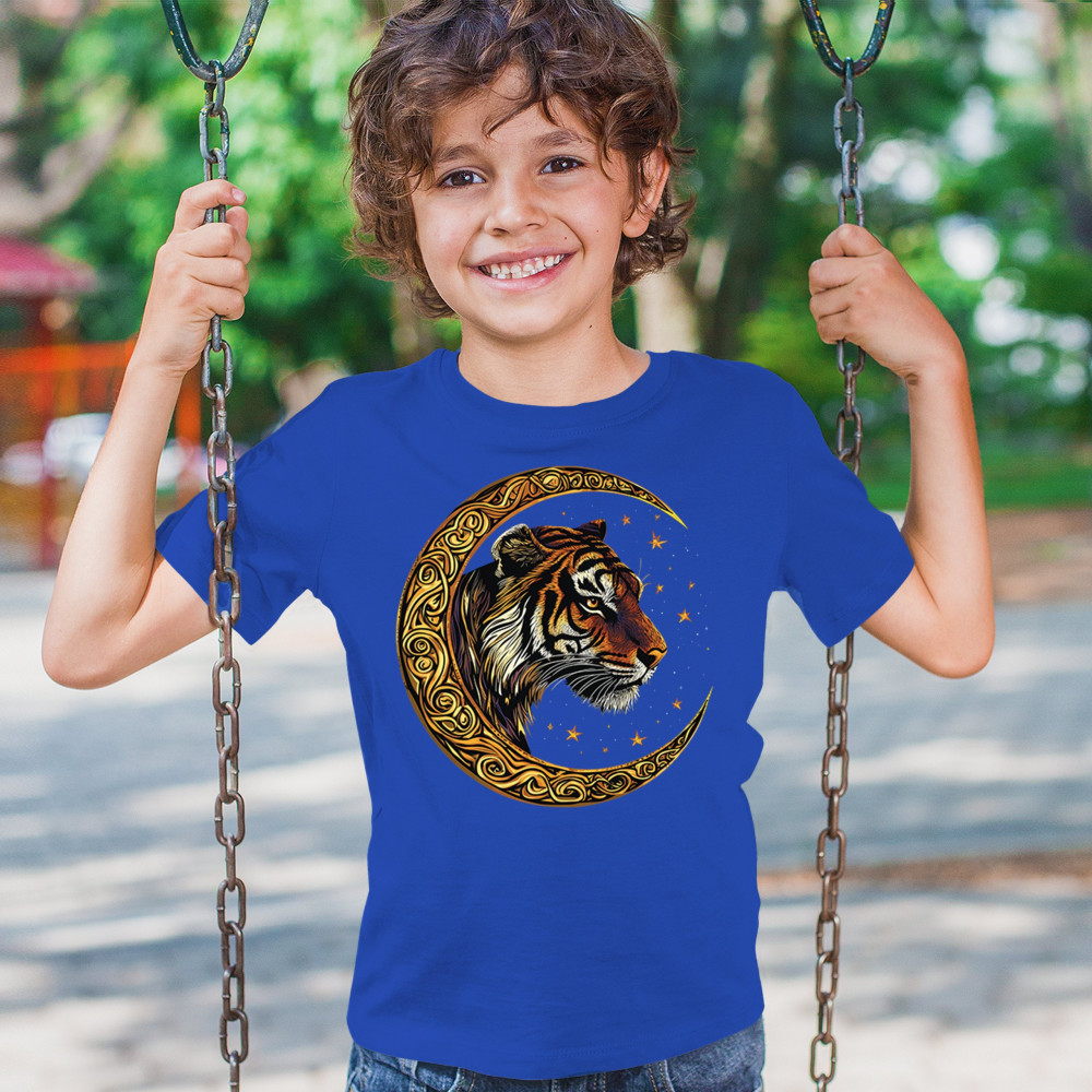 Bold tiger design in Celtic moon with cosmic sky. Symbol of strength, instinct, and jungle mysticism. Great for animal lovers and fantasy fans.