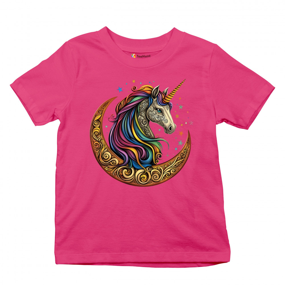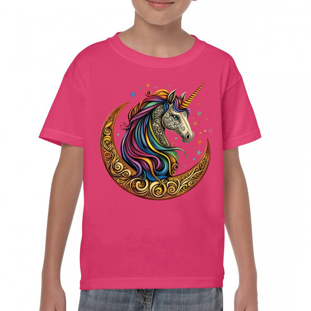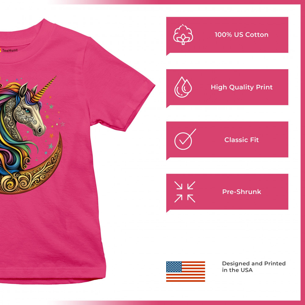 Rainbow-maned unicorn in golden Celtic moon design—perfect for fantasy lovers, dreamers, and unicorn fans who believe in magic and spirit.