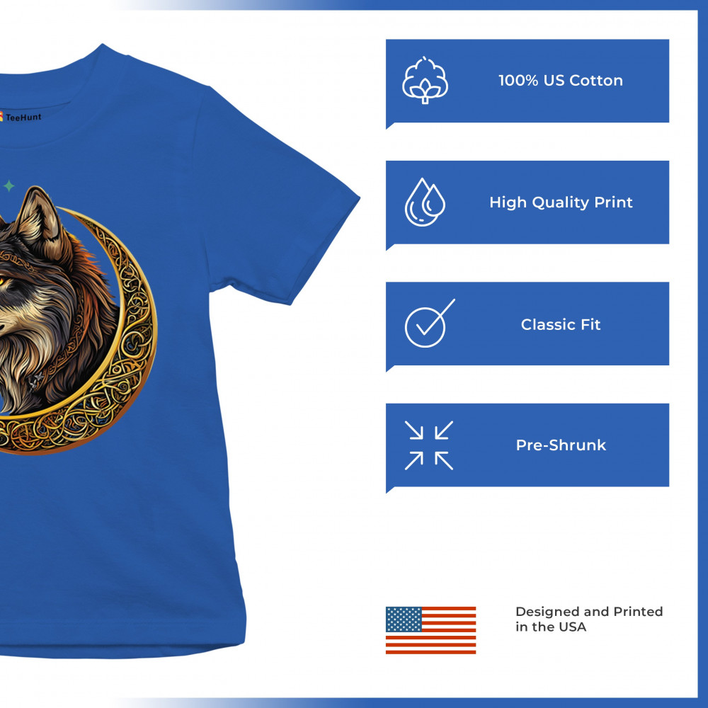 Celtic wolf design in a glowing crescent moon. Symbolizes loyalty, mysticism, and wild energy. Great for fantasy fans and spirit animal seekers.