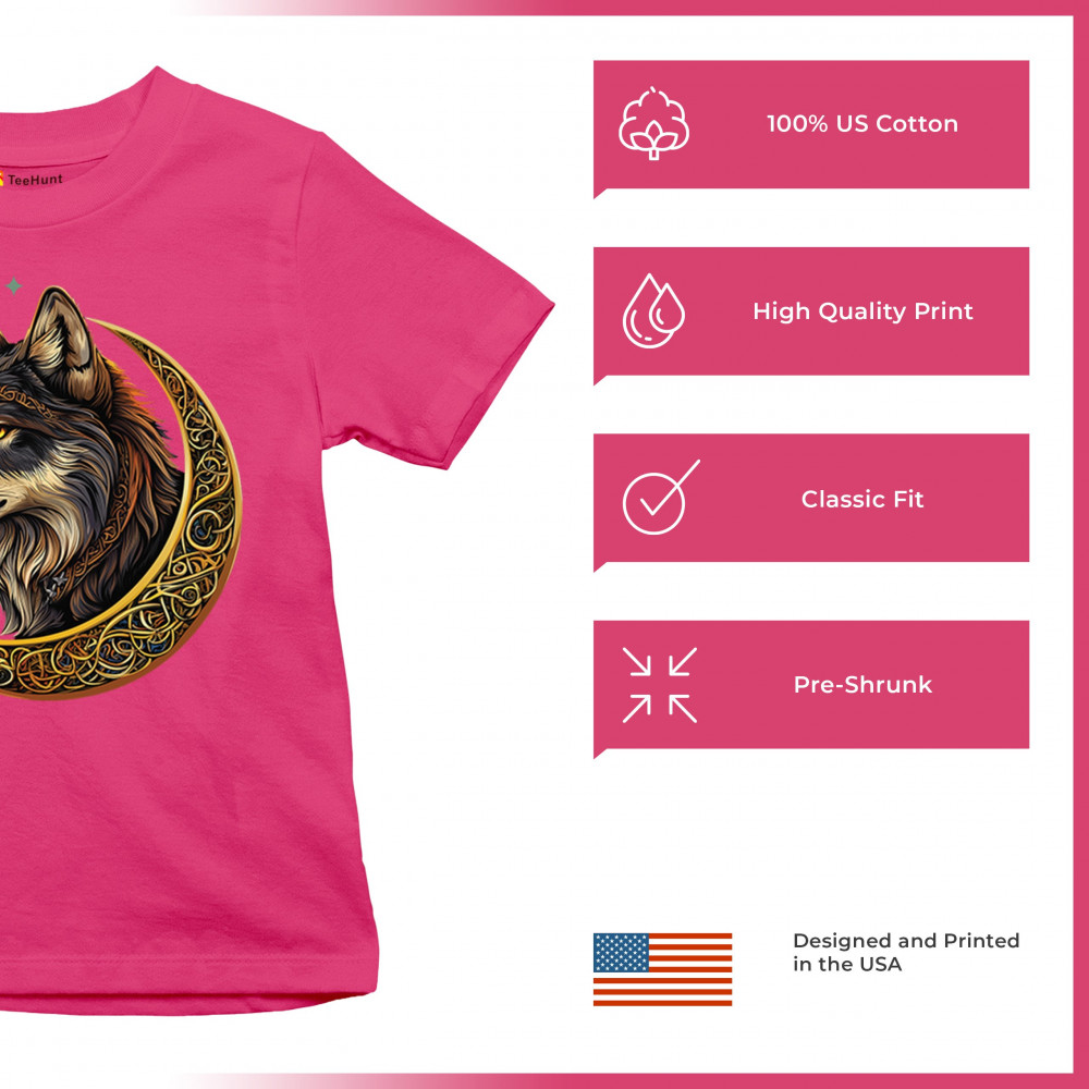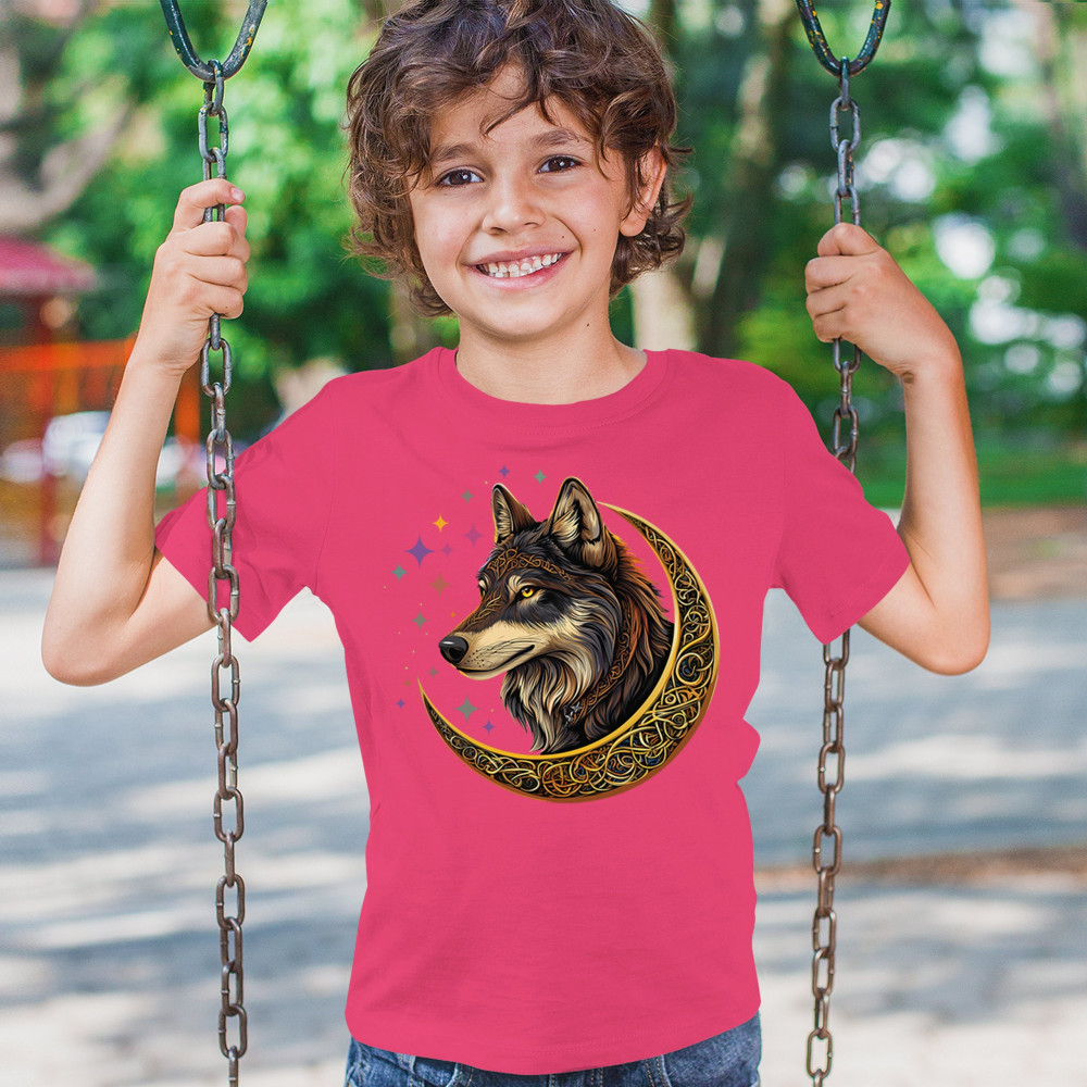 Celtic wolf design in a glowing crescent moon. Symbolizes loyalty, mysticism, and wild energy. Great for fantasy fans and spirit animal seekers.