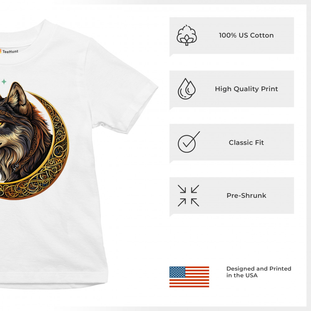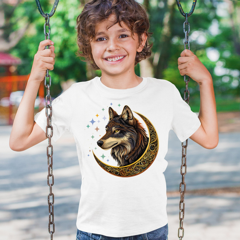 Celtic wolf design in a glowing crescent moon. Symbolizes loyalty, mysticism, and wild energy. Great for fantasy fans and spirit animal seekers.