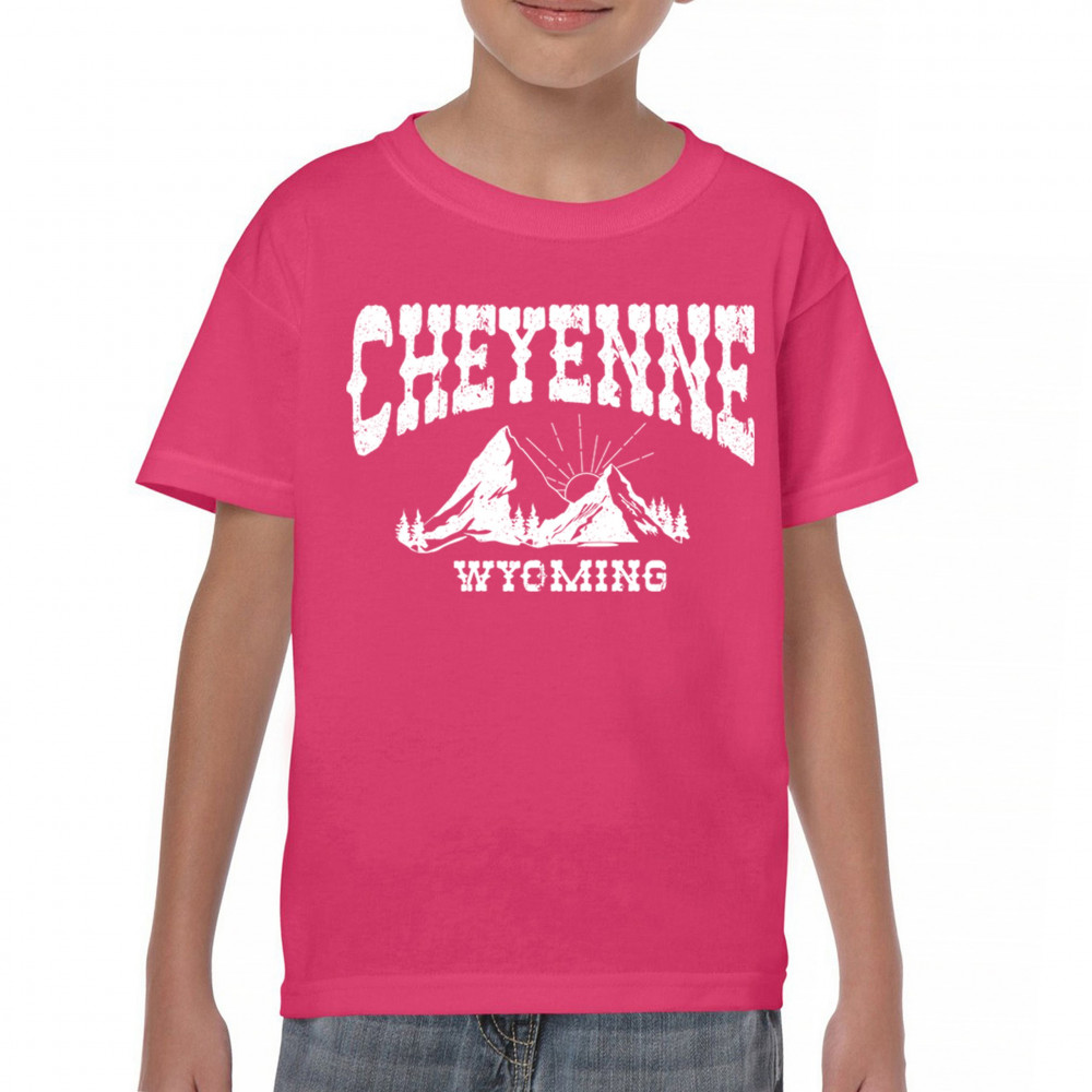 Vintage Cheyenne Wyoming design with mountain sunrise for outdoor lovers and locals. Perfect for travel, hiking, or Western pride.