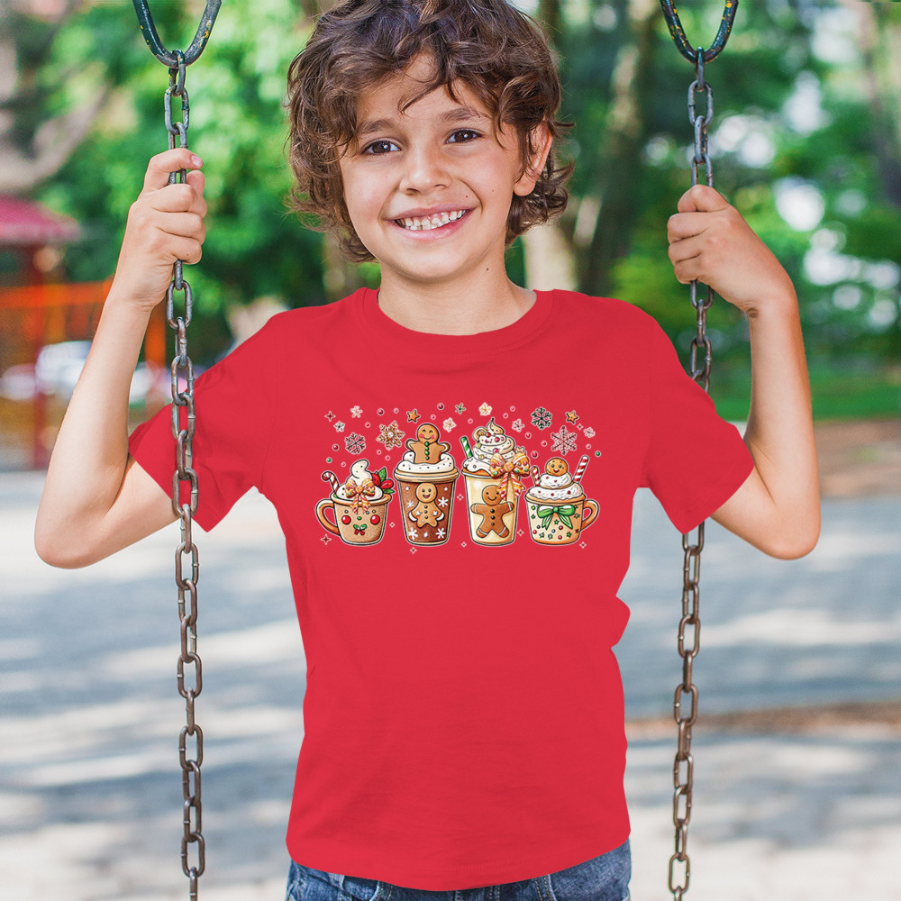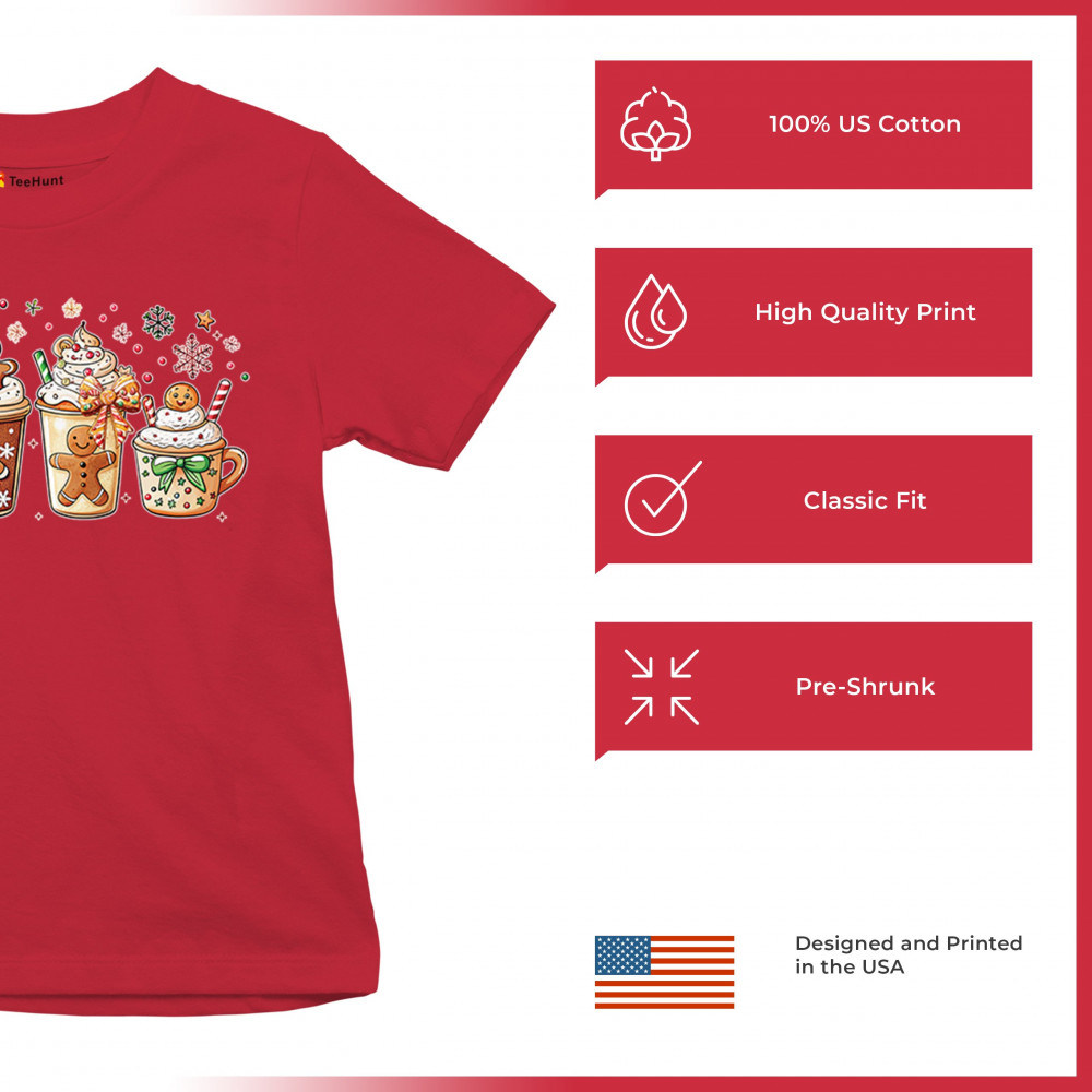 This cute Christmas drink design showcases gingerbread mugs, whipped cream, candy canes, sprinkles, and festive decorations for a warm winter aesthetic. Perfect for cocoa lovers, coffee fans, bakers, cozy holiday nights, gift exchanges, Christmas morning vibes, seasonal parties, and anyone who loves adorable dessert-inspired holiday art.