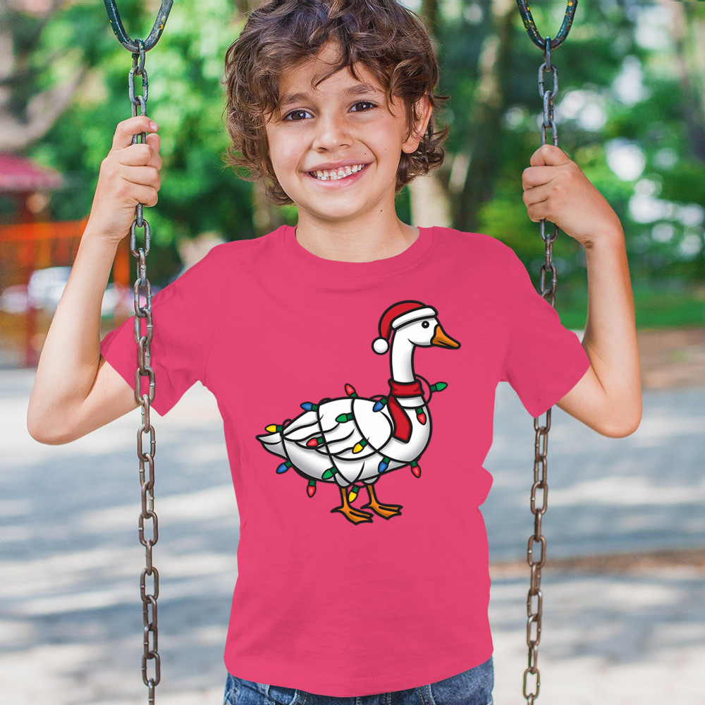 Funny Christmas goose wrapped in lights with festive humor, perfect for holiday gifting, white elephant exchanges, and cheerful seasonal style.