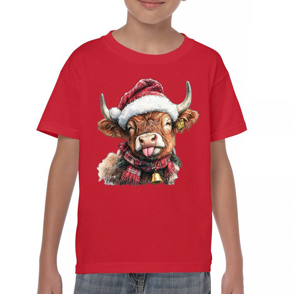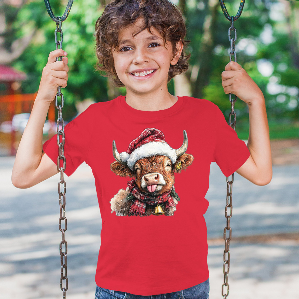 Christmas Highland Cow shirt – rustic holiday design with Santa hat cow, farmhouse holiday humor, country Christmas vibes, and festive livestock art.