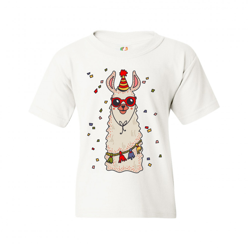 CHRISTMAS LLAMA youth t-shirt merry and bright let it snow funny xmas kids white