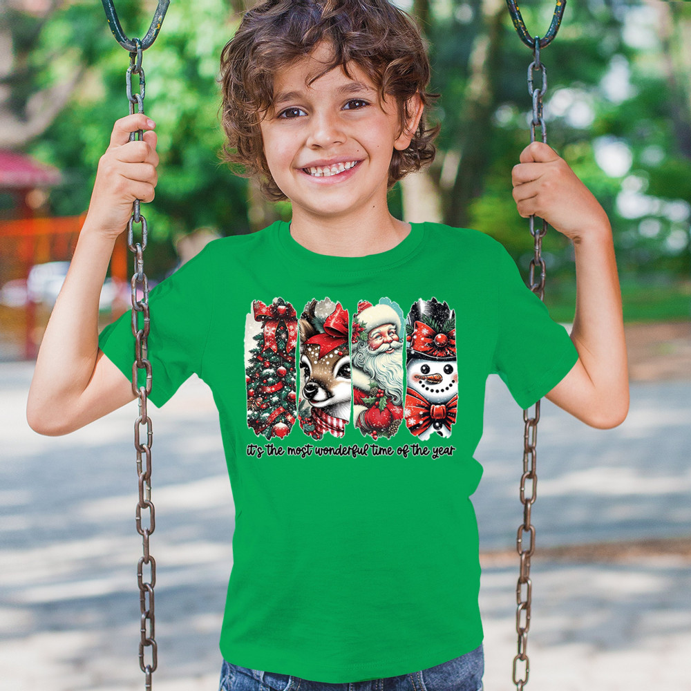 This Christmas design blends a decorated tree, sweet reindeer, vintage Santa, and a bright snowman for a classic seasonal look. Ideal for holiday lovers, winter gatherings, festive parties, gift exchanges, Christmas morning, and anyone who enjoys cheerful, nostalgic holiday art. A warm, eye-catching design that brings out the magic of the season.