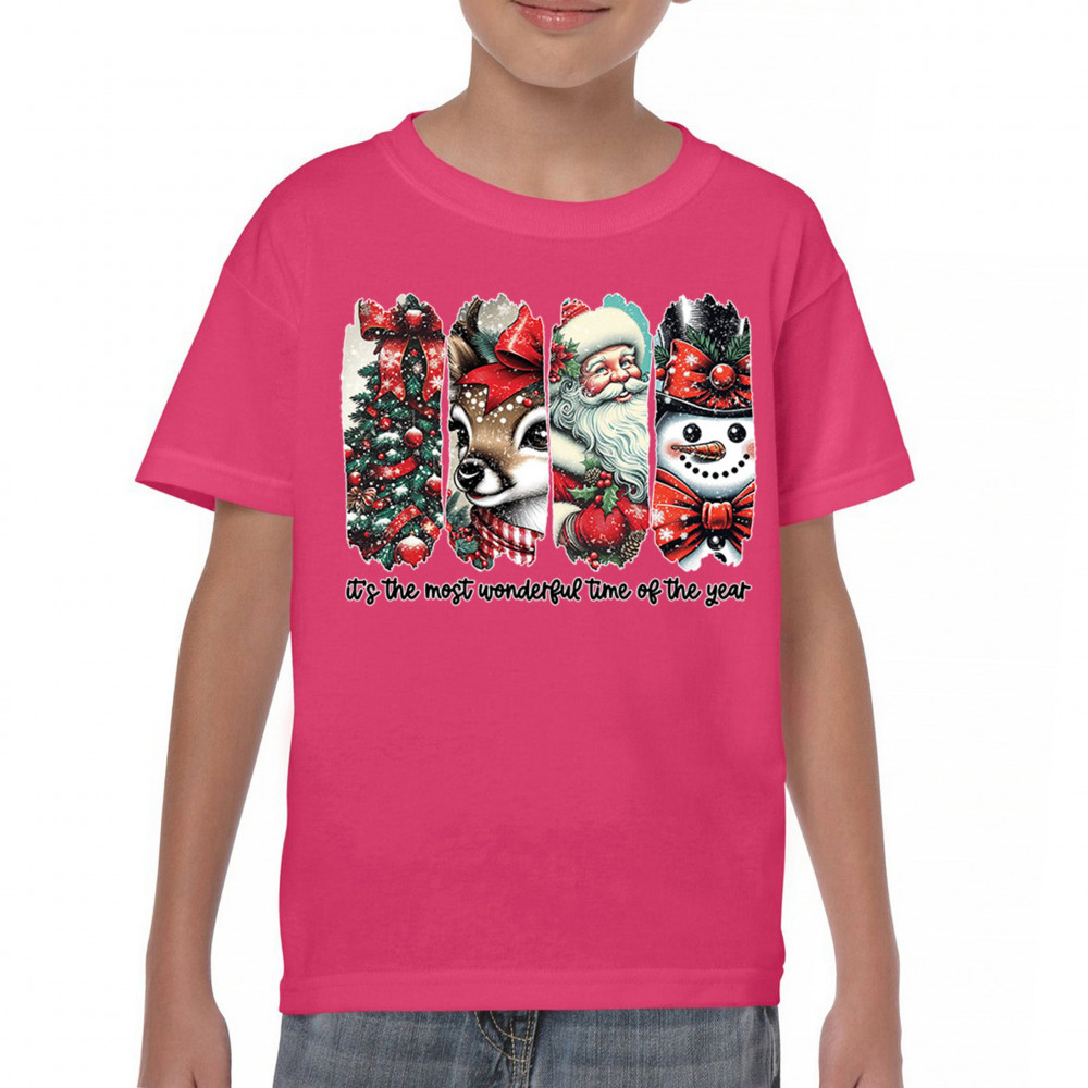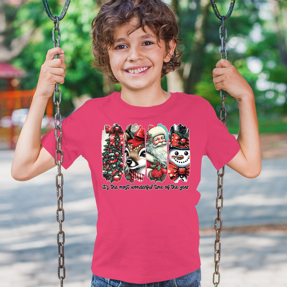 This Christmas design blends a decorated tree, sweet reindeer, vintage Santa, and a bright snowman for a classic seasonal look. Ideal for holiday lovers, winter gatherings, festive parties, gift exchanges, Christmas morning, and anyone who enjoys cheerful, nostalgic holiday art. A warm, eye-catching design that brings out the magic of the season.