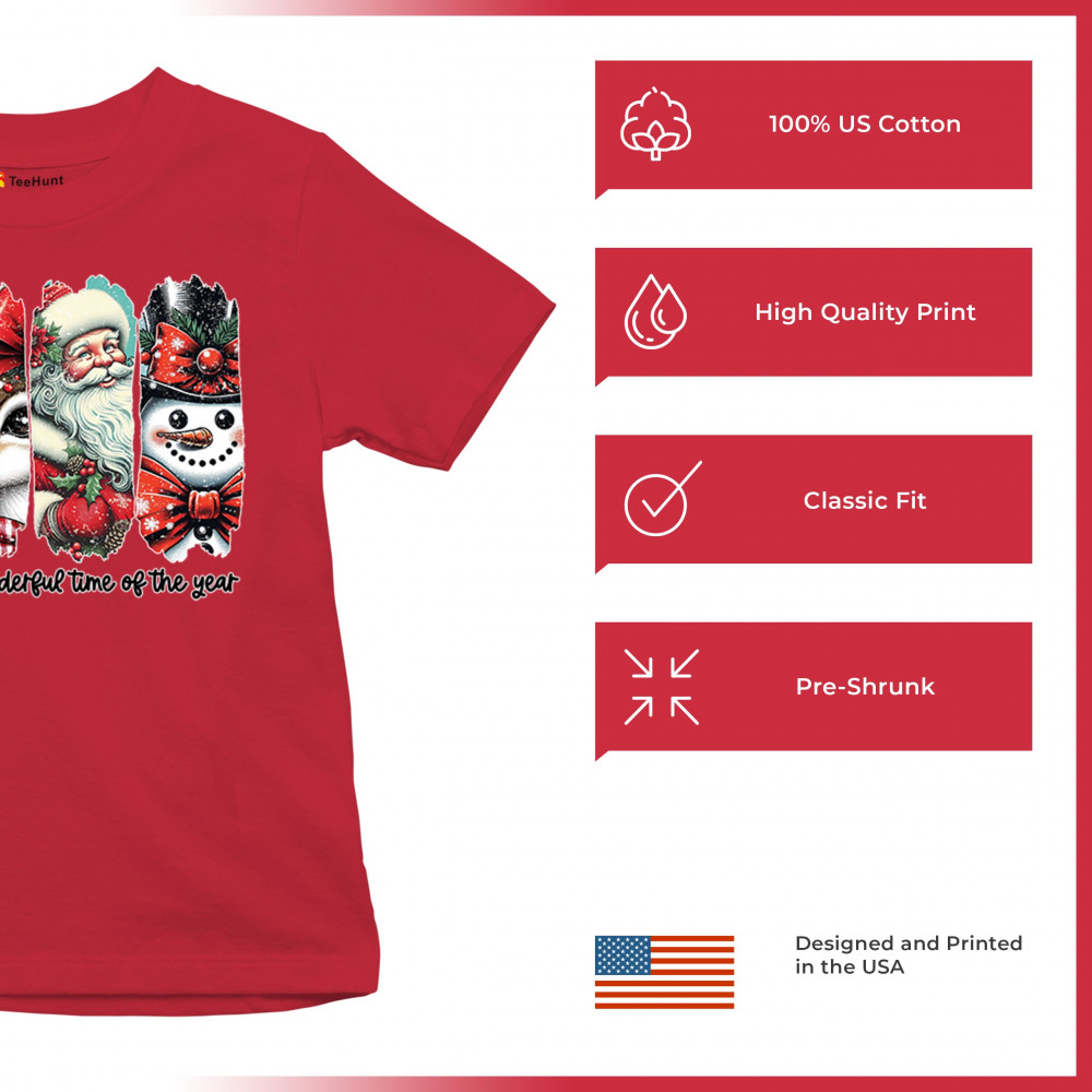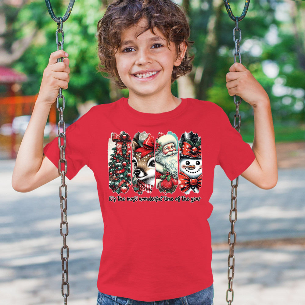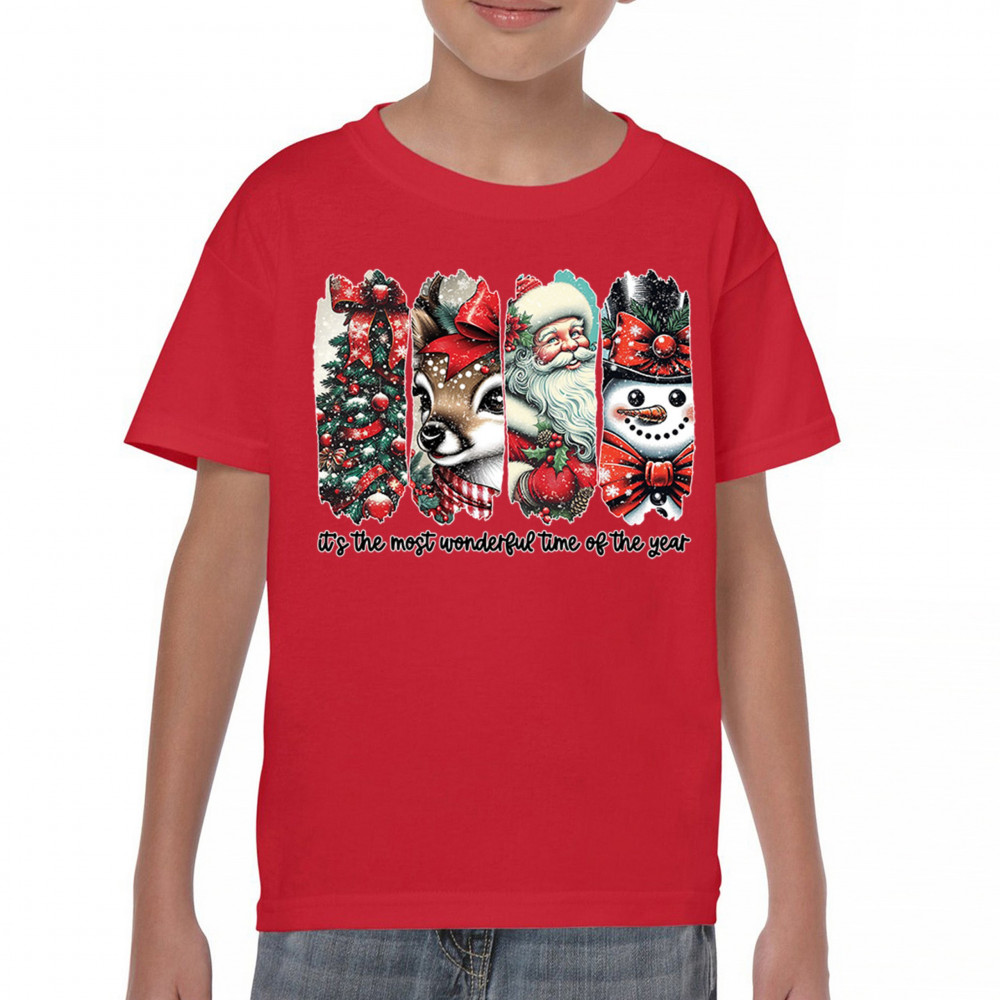 This Christmas design blends a decorated tree, sweet reindeer, vintage Santa, and a bright snowman for a classic seasonal look. Ideal for holiday lovers, winter gatherings, festive parties, gift exchanges, Christmas morning, and anyone who enjoys cheerful, nostalgic holiday art. A warm, eye-catching design that brings out the magic of the season.