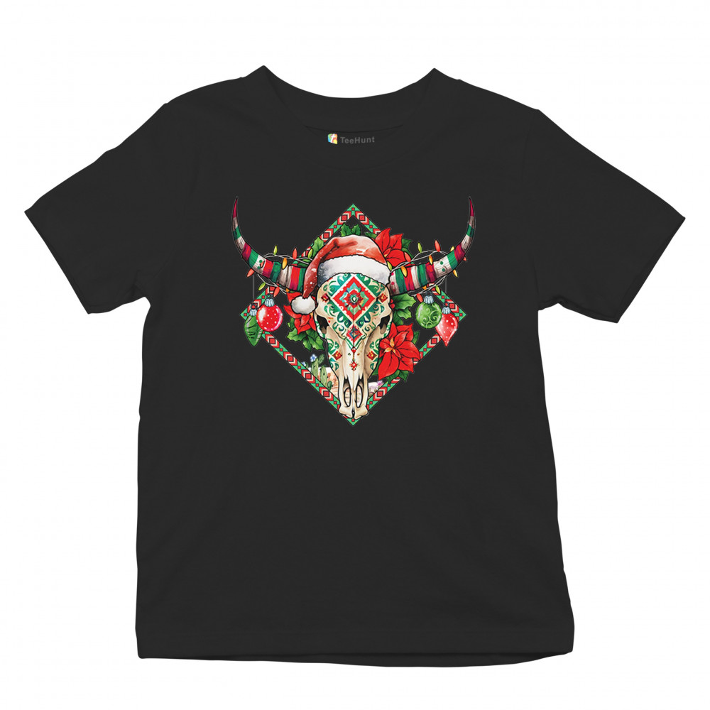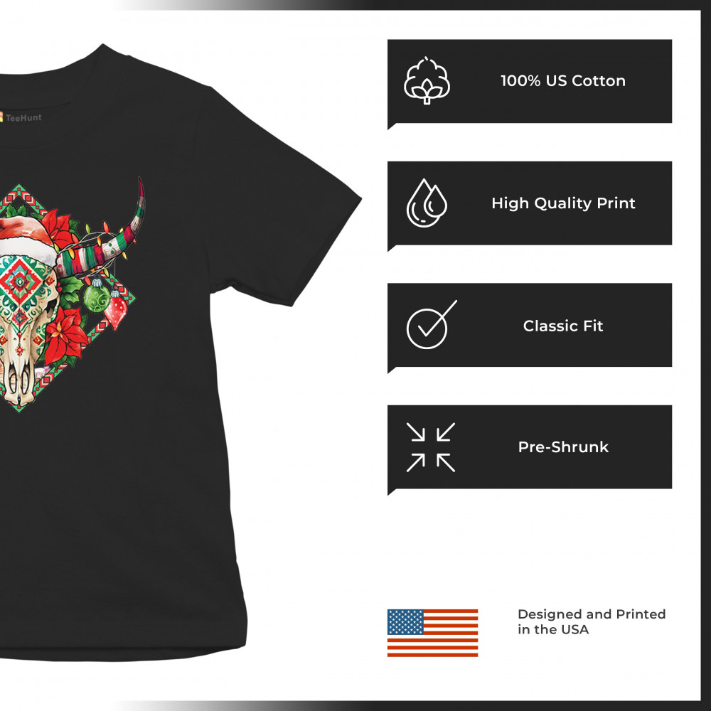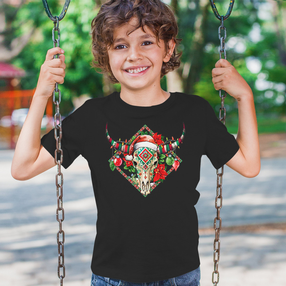 Blend Southwestern charm with holiday cheer! This vibrant skull design with poinsettias and ornaments is perfect for festive parties and unique gifts!