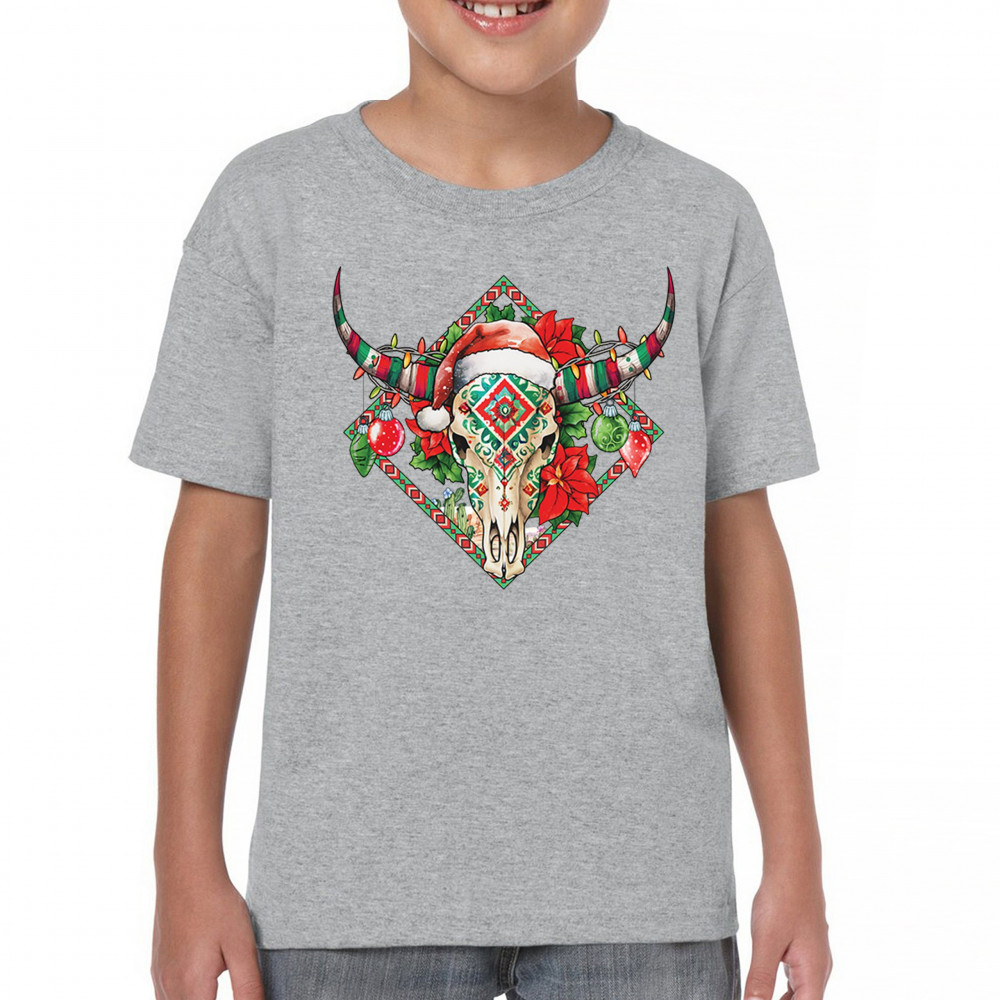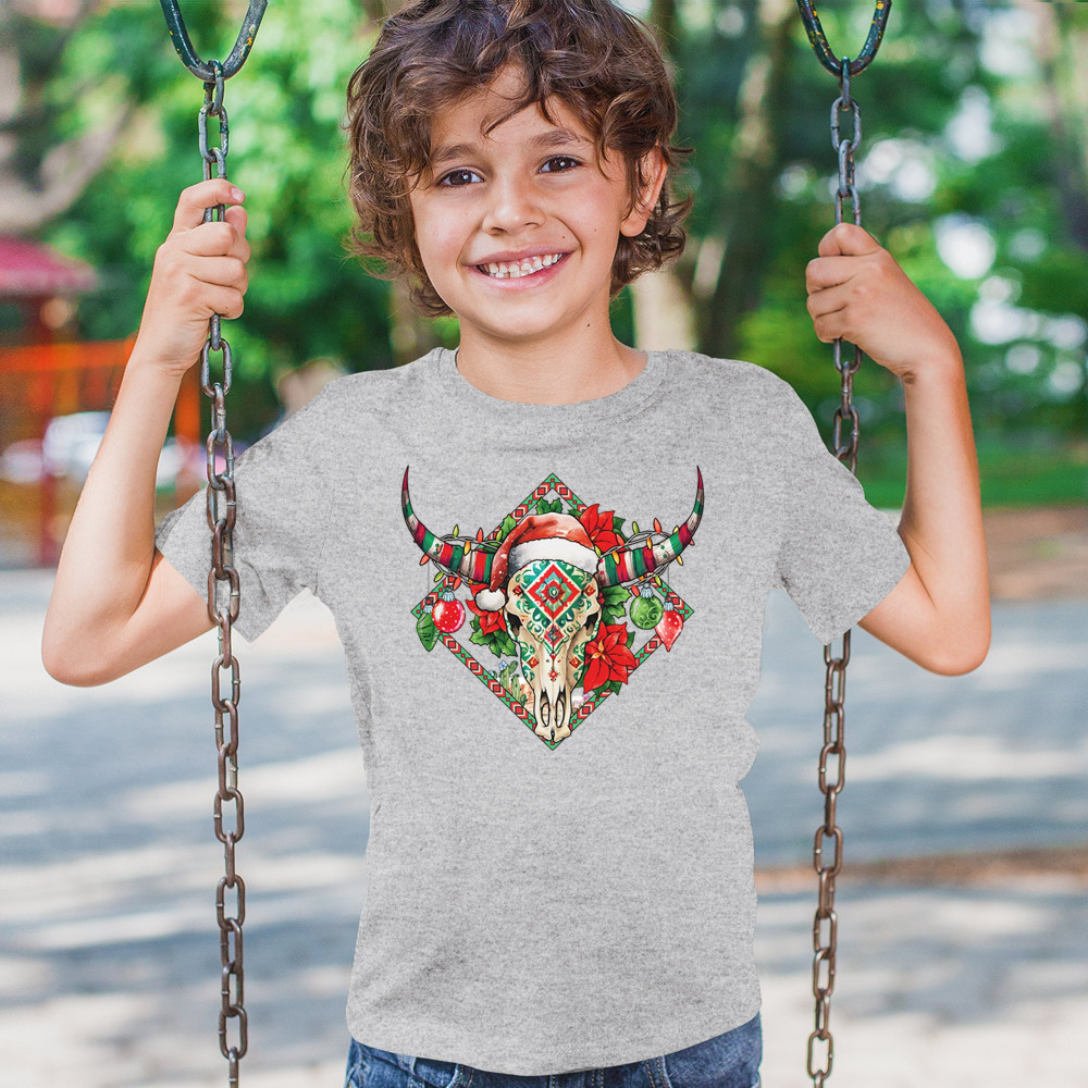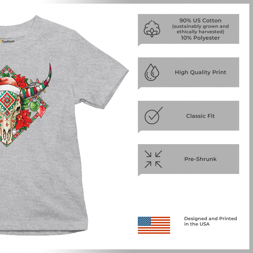 Blend Southwestern charm with holiday cheer! This vibrant skull design with poinsettias and ornaments is perfect for festive parties and unique gifts!