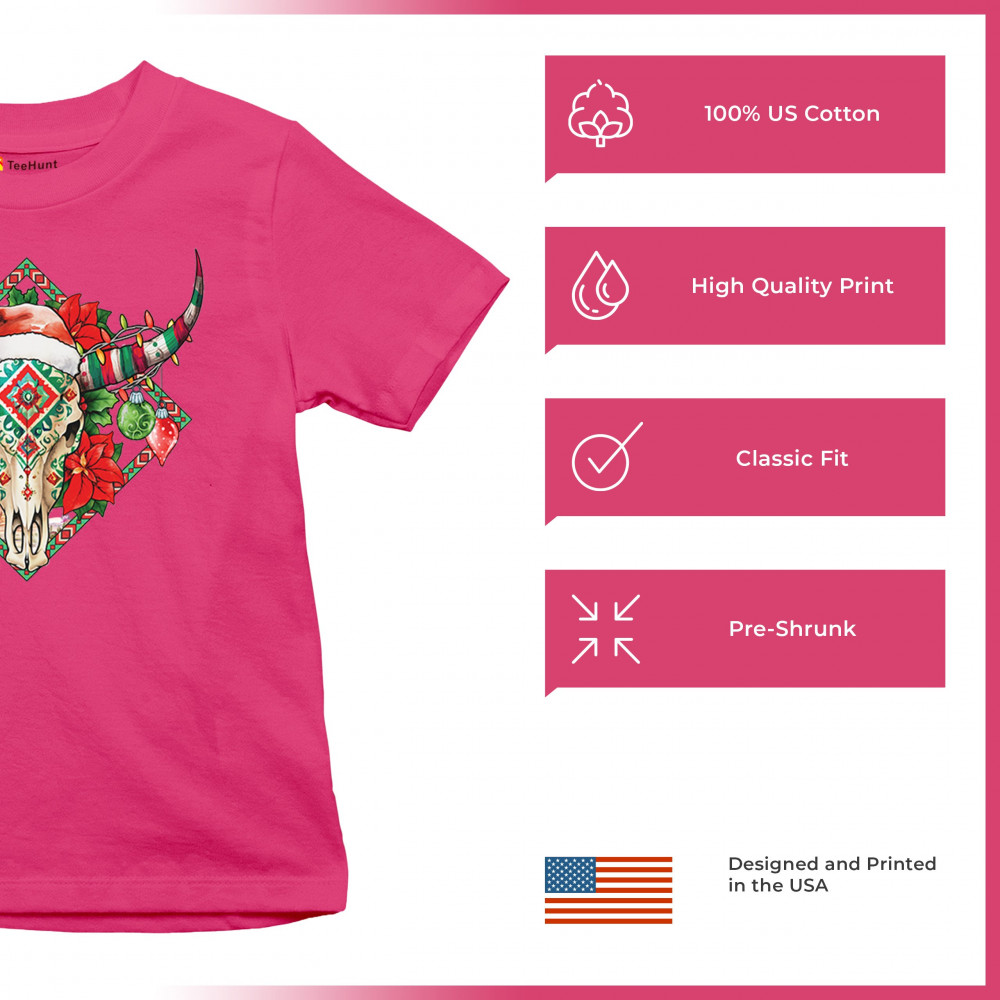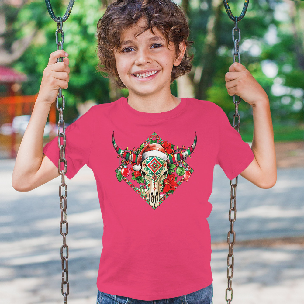 Blend Southwestern charm with holiday cheer! This vibrant skull design with poinsettias and ornaments is perfect for festive parties and unique gifts!