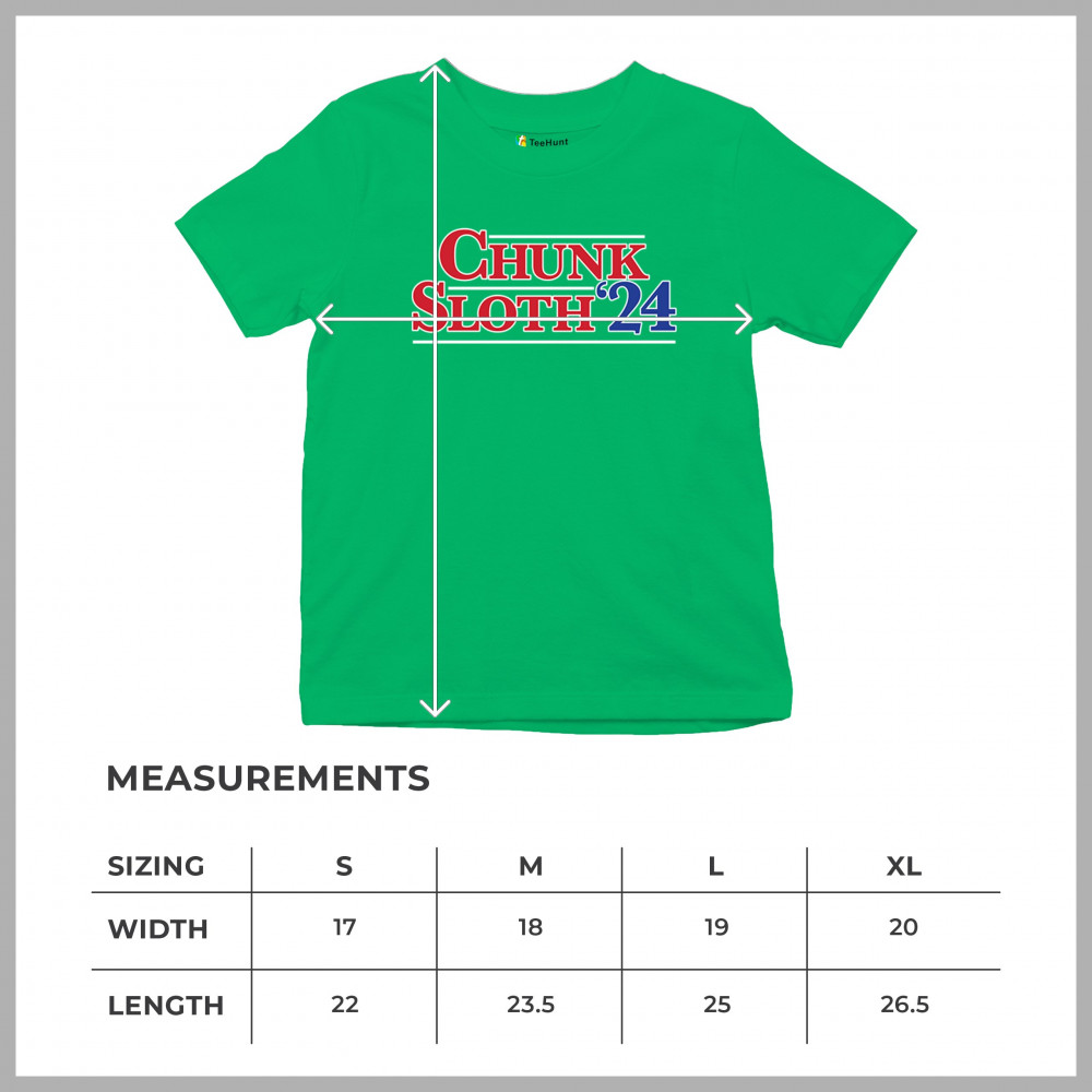 Celebrate 80s nostalgia and political humor with our Chunk and Sloth '24 design. Perfect for casual wear, movie nights, and themed parties. Durable and stylish.