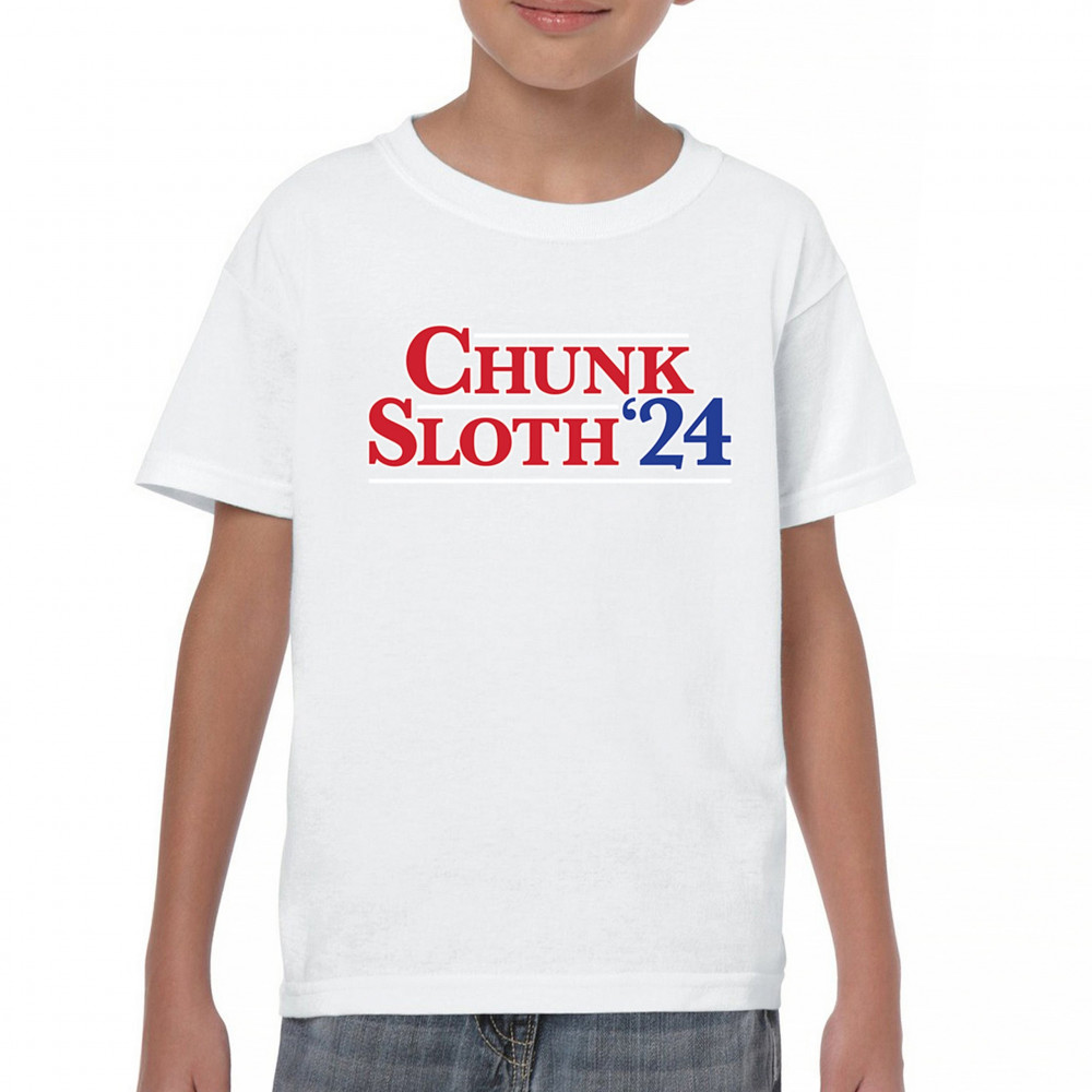 Celebrate 80s nostalgia and political humor with our Chunk and Sloth '24 design. Perfect for casual wear, movie nights, and themed parties. Durable and stylish.