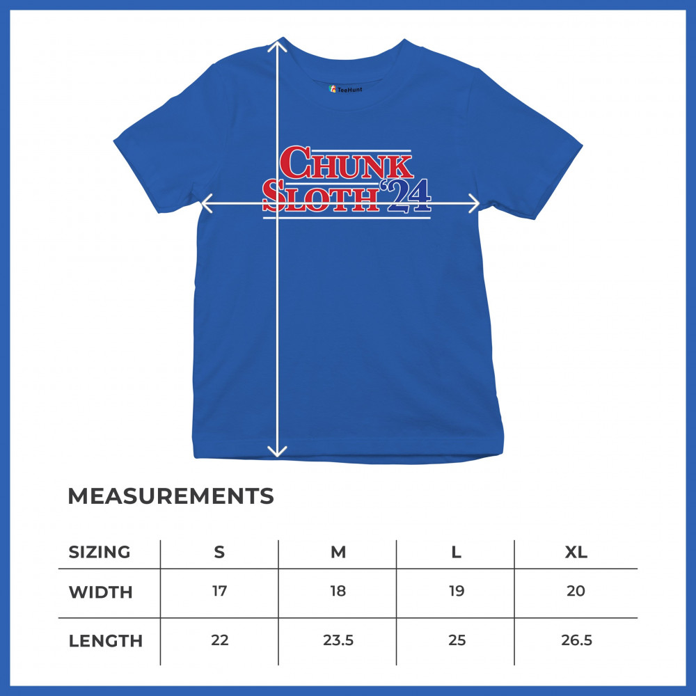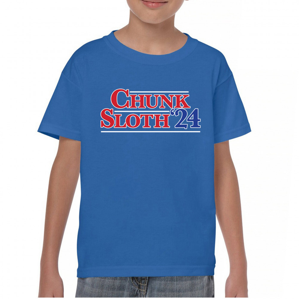 Celebrate 80s nostalgia and political humor with our Chunk and Sloth '24 design. Perfect for casual wear, movie nights, and themed parties. Durable and stylish.