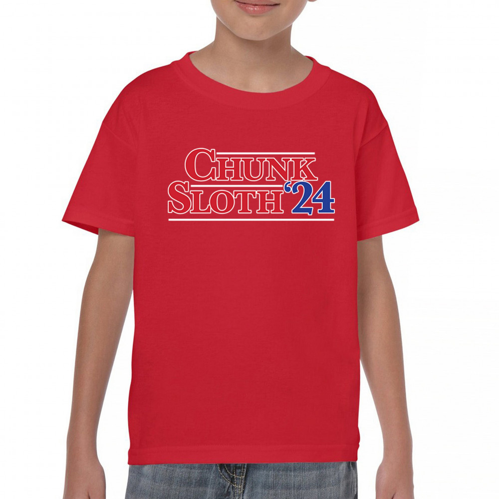 Celebrate 80s nostalgia and political humor with our Chunk and Sloth '24 design. Perfect for casual wear, movie nights, and themed parties. Durable and stylish.